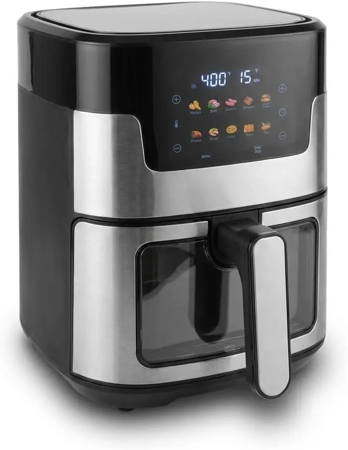 Discover the perfect kitchen companion with our compact digital air fryer, designed to make healthy cooking effortless and enjoyable. This versatile appliance is ideal for small kitchens or anyone seeking a convenient countertop solution. Key Features: 1. **Compact Design**: With a 4.5-liter capacity, this air fryer fits seamlessly into tight spaces, making it perfect for apartments, dorms, or cozy homes without sacrificing functionality. 2. **User-Friendly Operation**: Equipped with precision touch controls, the device offers intuitive settings that allow you to adjust temperature and time easily, ensuring consistent results every time. 3. **Healthy Cooking Made Simple**: Enjoy delicious meals with up to 80% less oil compared to traditional frying methods. It promotes a healthier lifestyle by reducing fat intake while preserving flavor and texture. 4. **Quick and Efficient**: Prepare meals in minutes—from crispy fries and chicken wings to roasted vegetables and baked goods—saving you time in the kitchen without compromising on taste. 5. **Non-Toxic Materials**: Constructed with safe, BPA-free materials, this air fryer ensures your food is cooked in a clean environment free from harmful chemicals. 6. **Versatile Performance**: Beyond frying, use it for grilling, baking, roasting, or reheating leftovers, offering multiple cooking options in one compact unit. 7. **Easy Maintenance**: The non-stick basket and removable parts are dishwasher-safe for hassle-free cleaning after use. Ideal for busy individuals or families looking to eat healthier without spending hours cooking. Experience the convenience of quick meals that taste great while supporting your wellness goals.