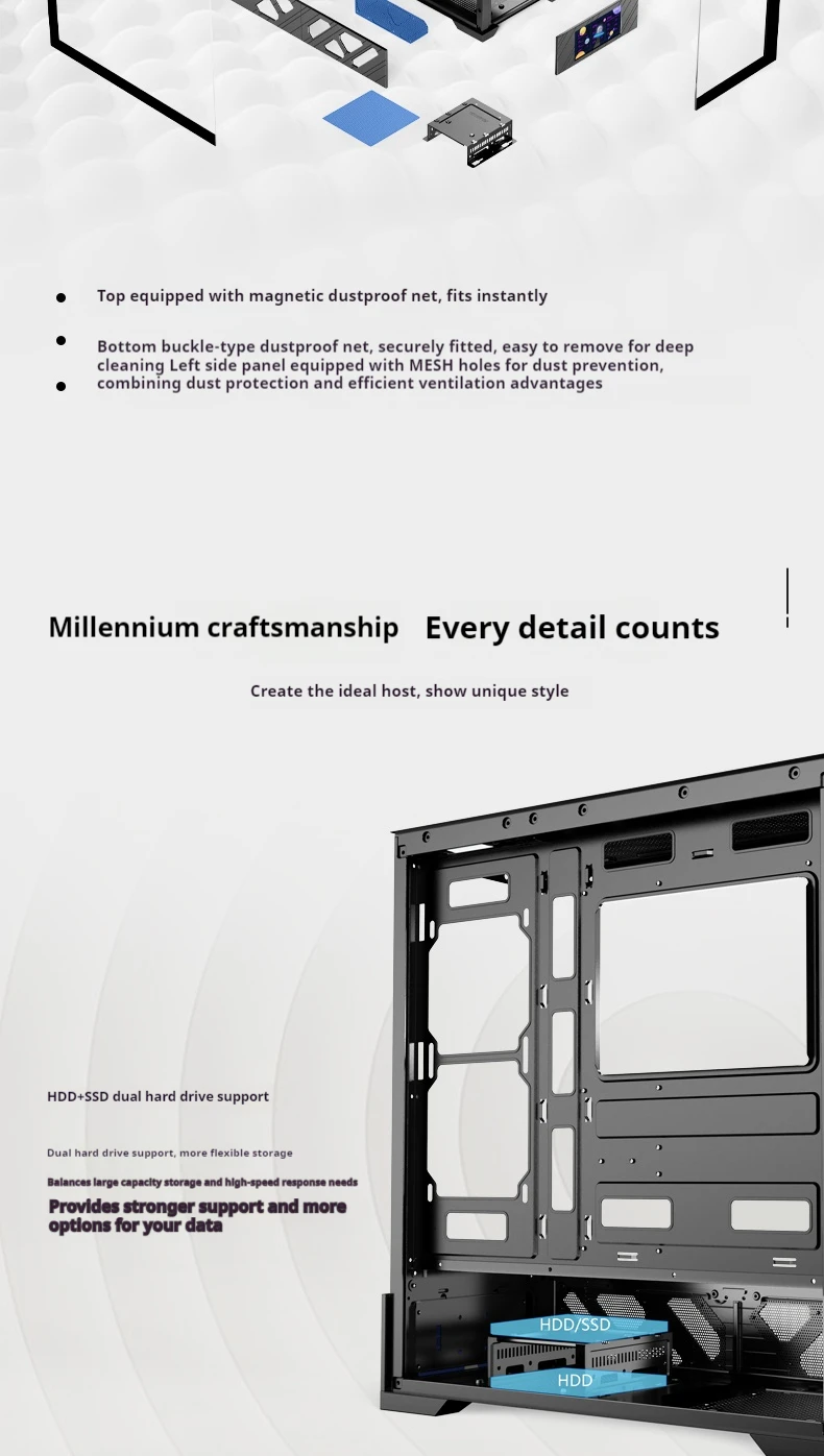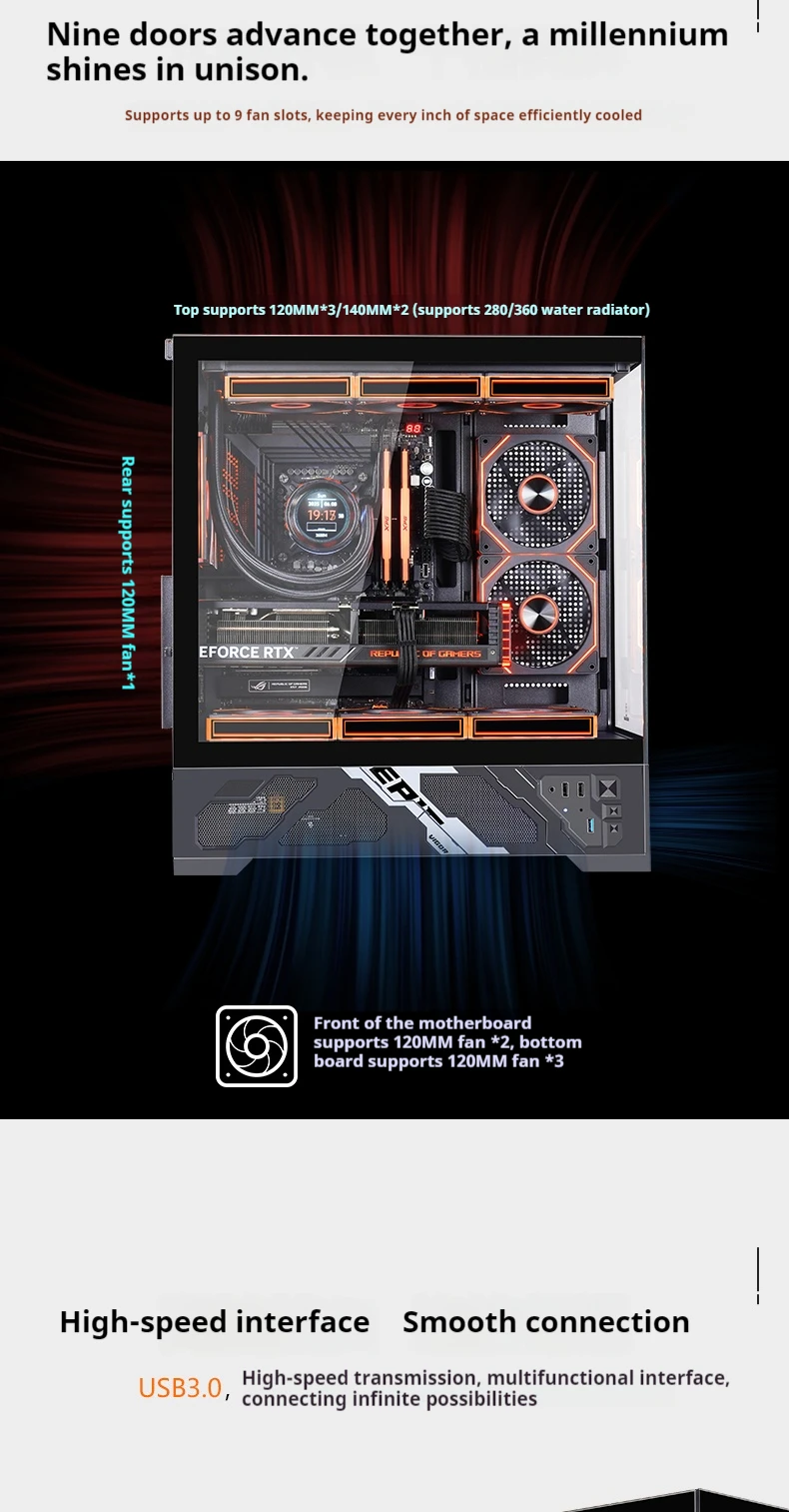 WJCOOLMAN Millennium ATX PC case screen/digital display supports 360 water cooled sea view room Customize screen computer case