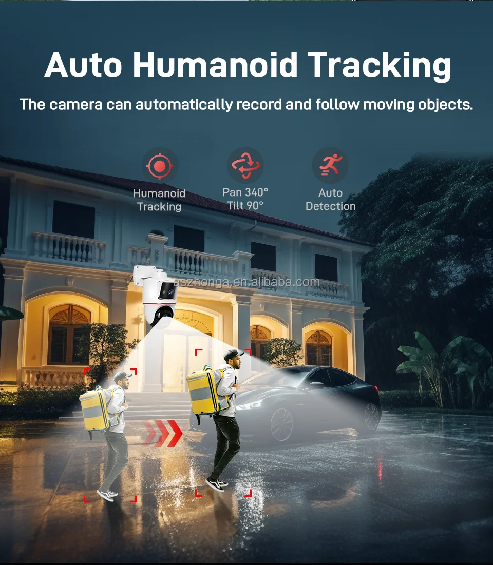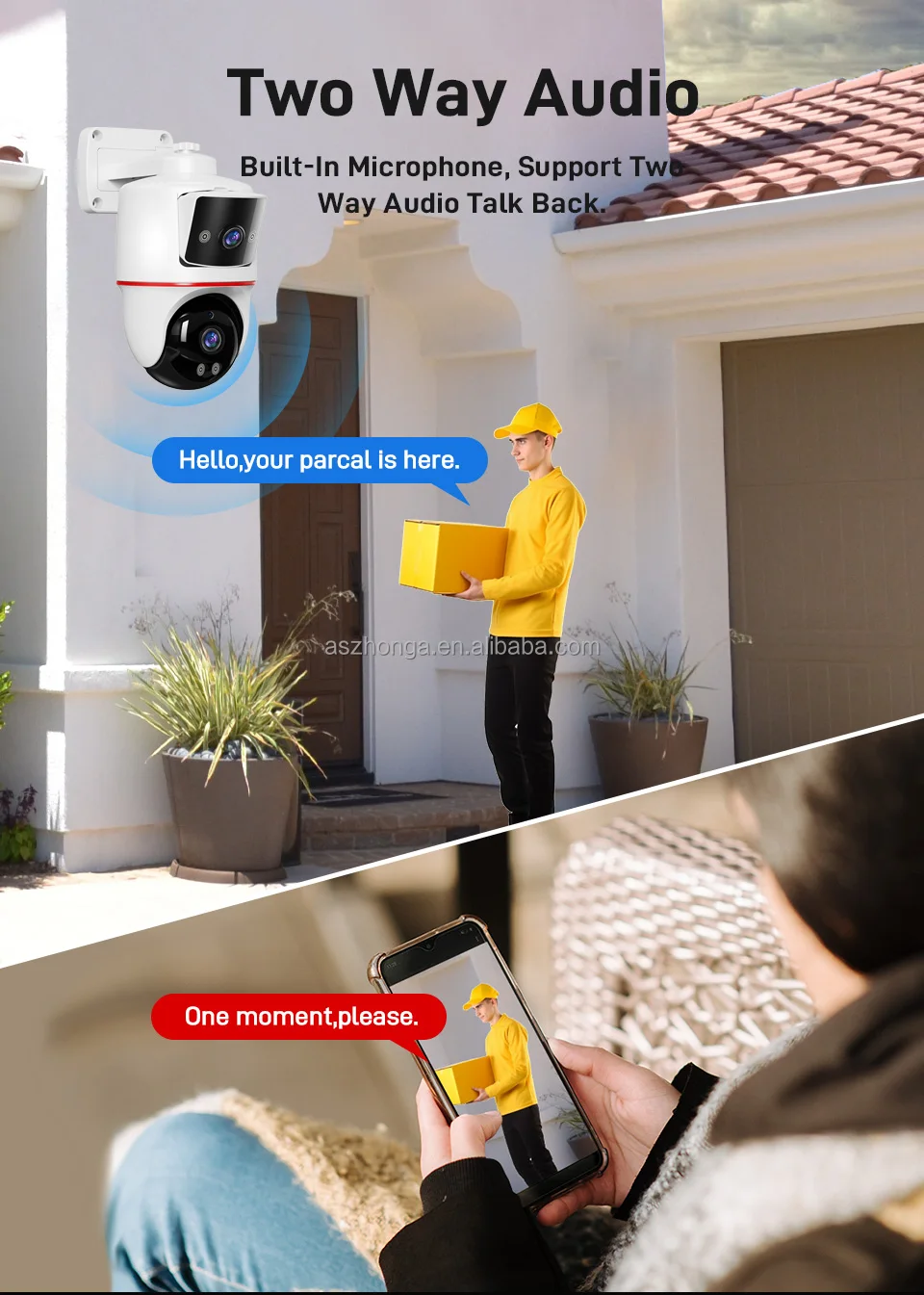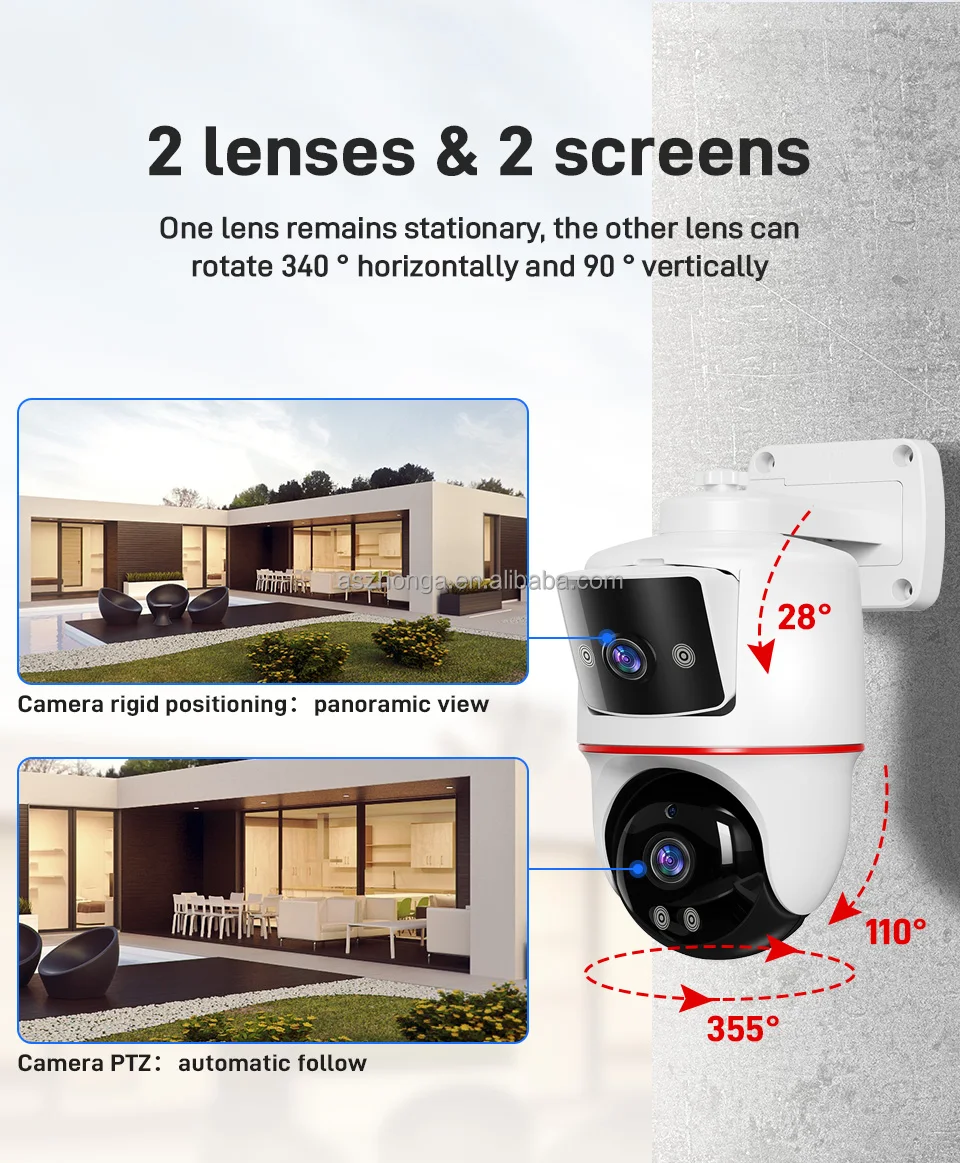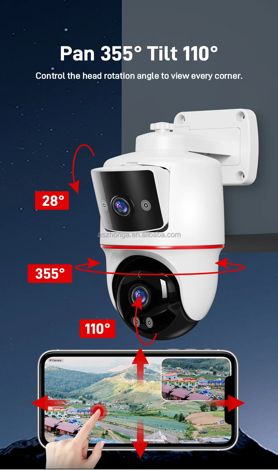 Smart Home Security System IP Security Wireless Wifi CCTV 4MP Camera Dual Lens Screen Display Flash Lights Mini Network Camera