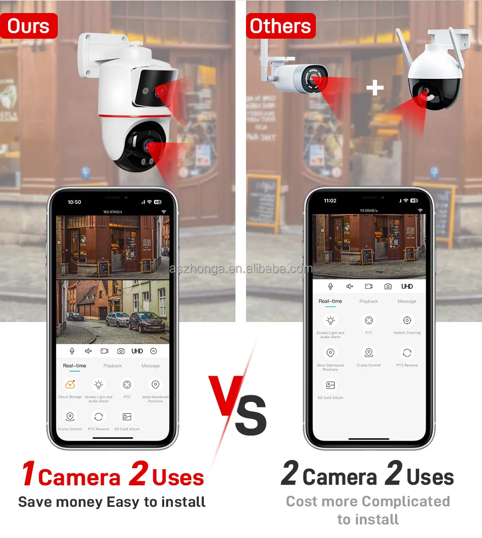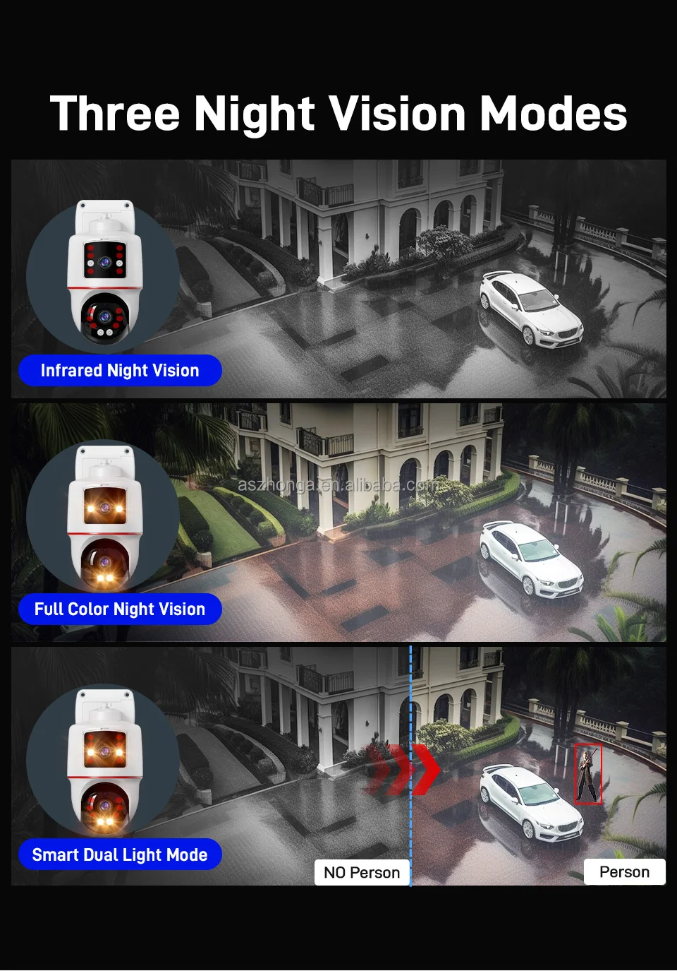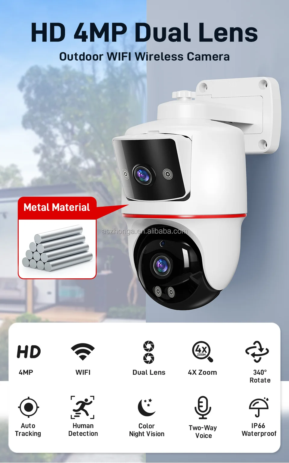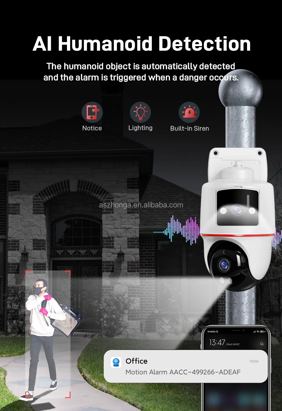 Smart Home Security System IP Security Wireless Wifi CCTV 4MP Camera Dual Lens Screen Display Flash Lights Mini Network Camera