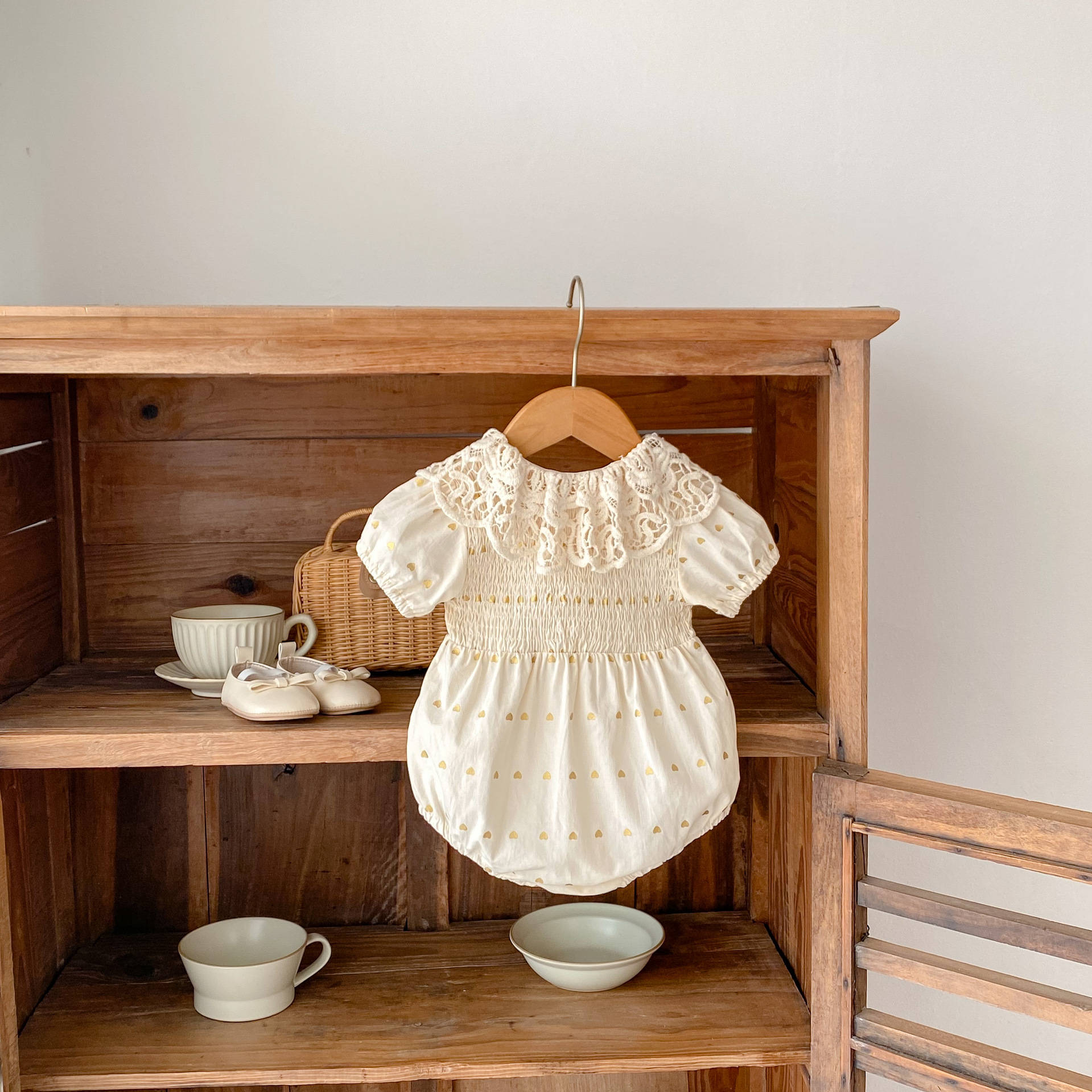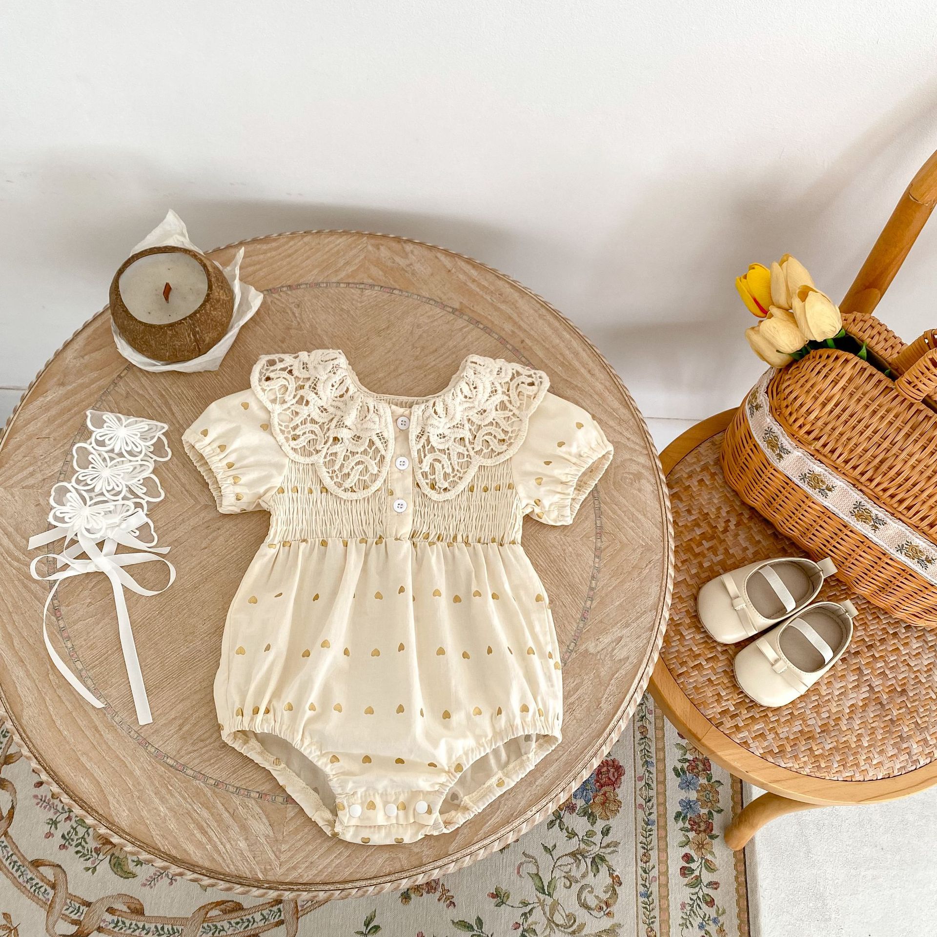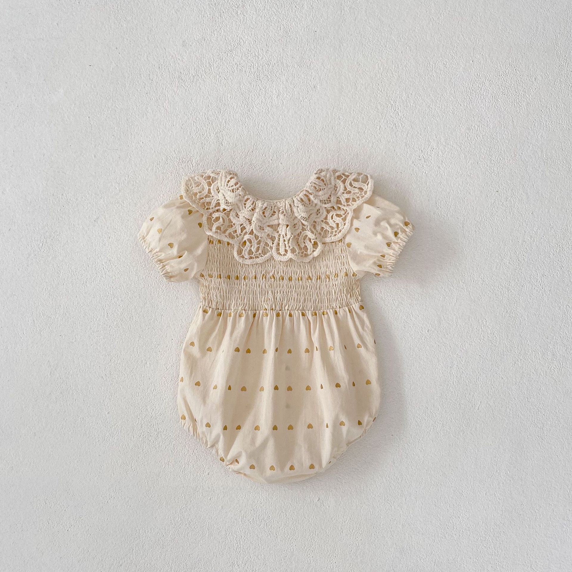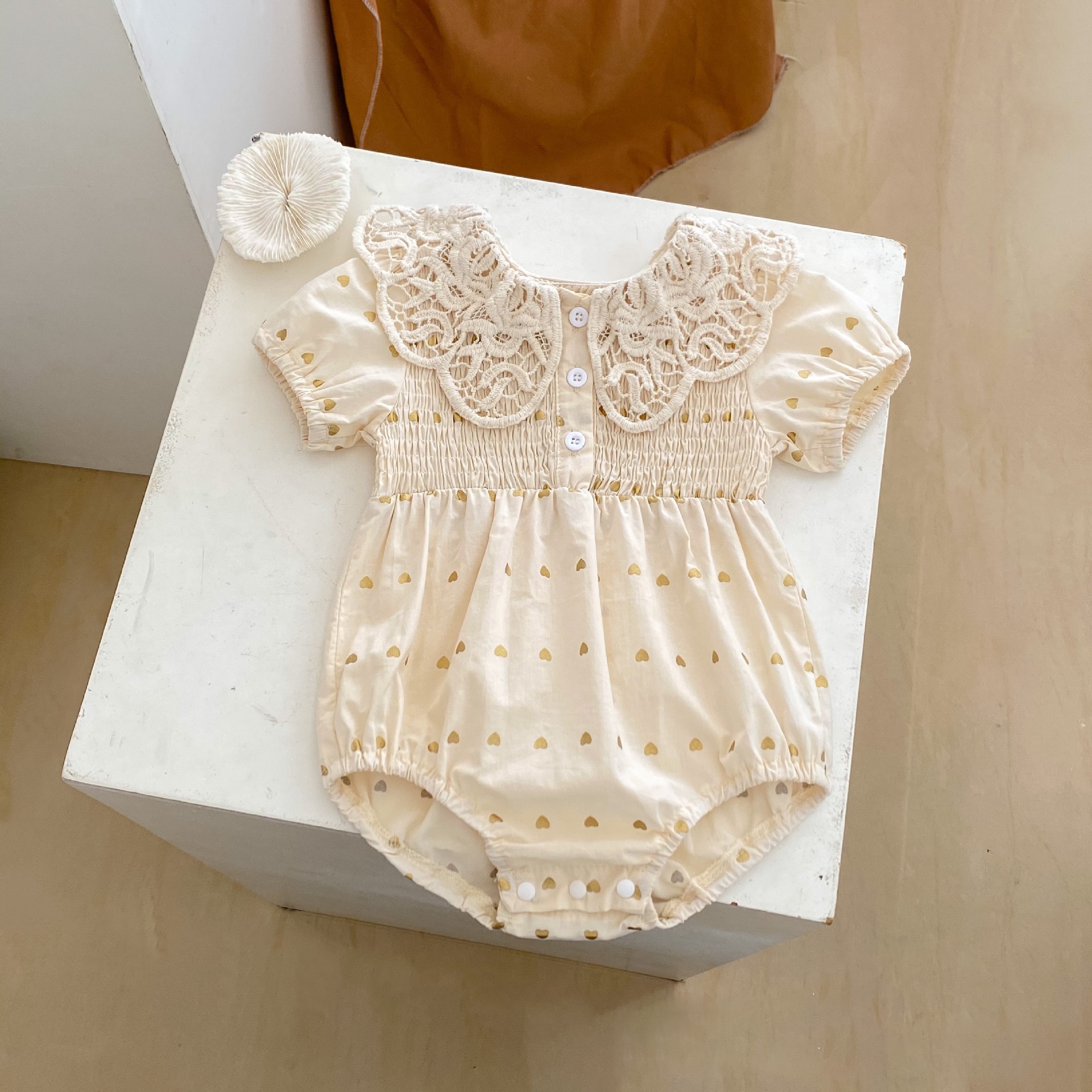 Big Lace Lapel Heart Printing Short Sleeved Kazakhstan Young Baby Girl Onesie Jumpsuit