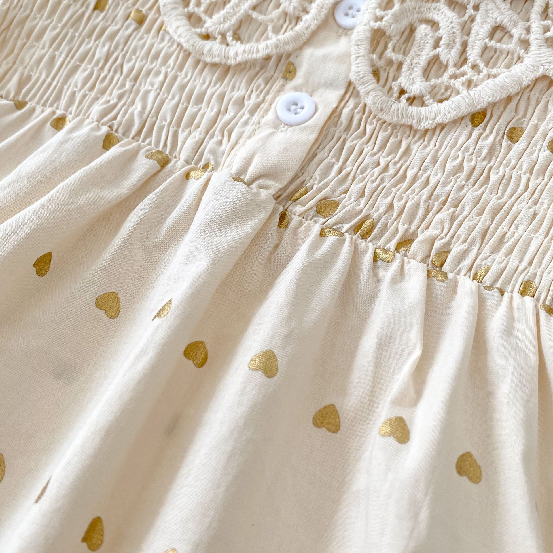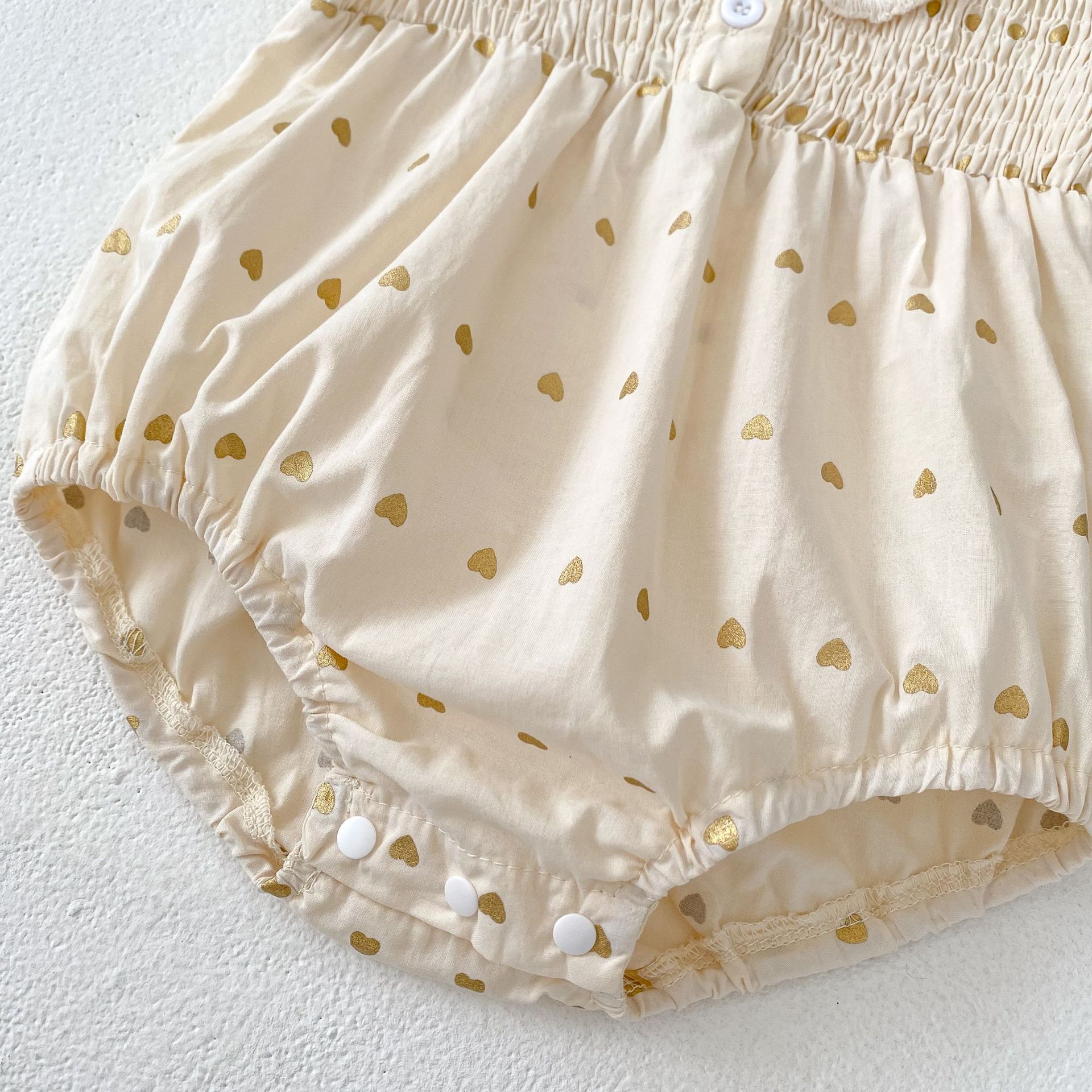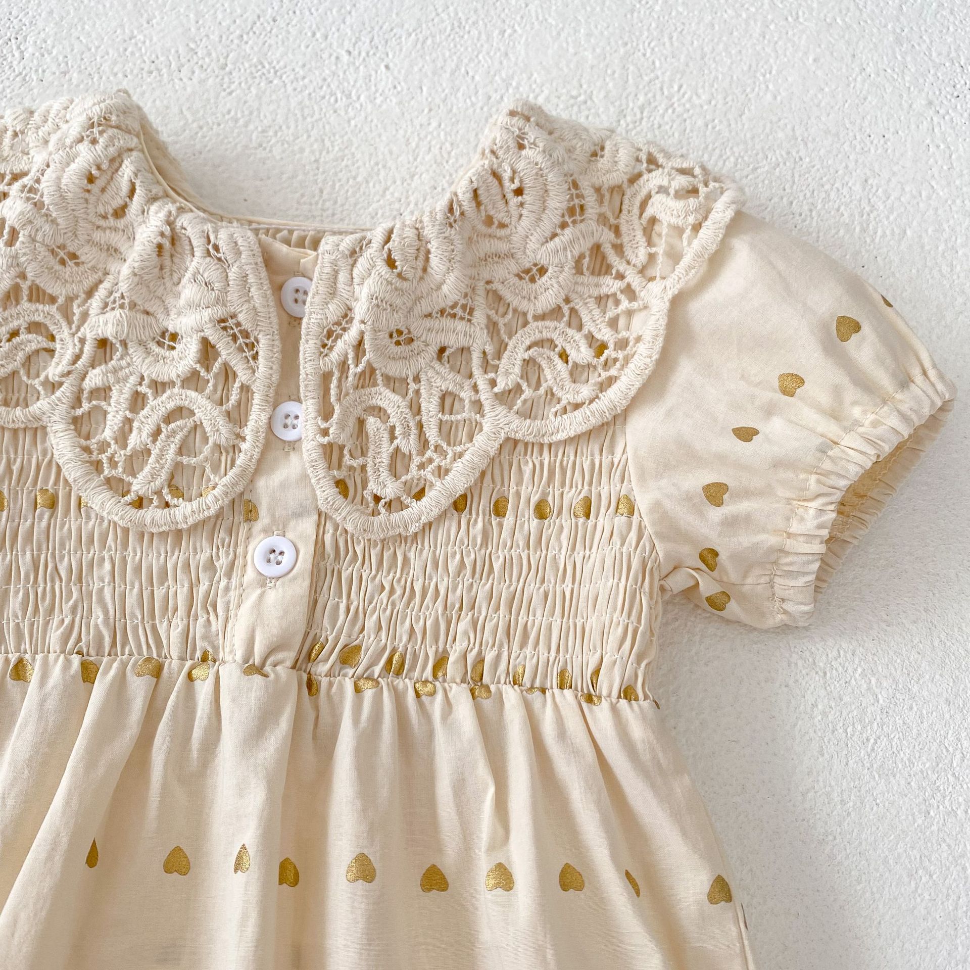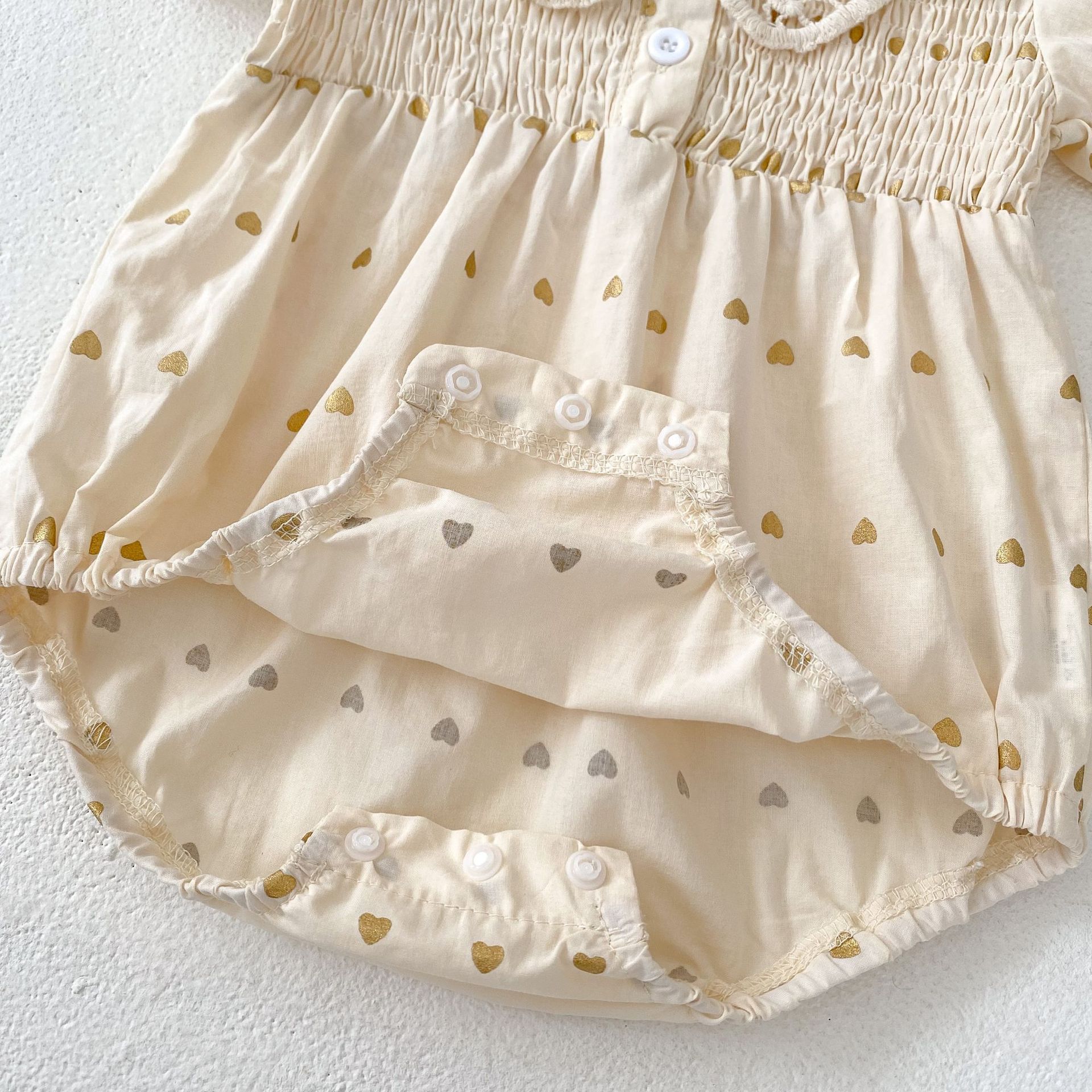 Big Lace Lapel Heart Printing Short Sleeved Kazakhstan Young Baby Girl Onesie Jumpsuit