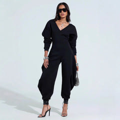 Sexy Long-sleeve Bodycon Jumpsuit With A Tight-fitting V-neck