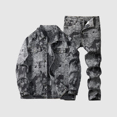 Mens Sophisticated Embossed Denim Jacket For Spring And Autumn In A Casual American Style relaxed fit drop shoulder denim set front view