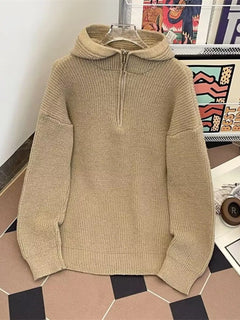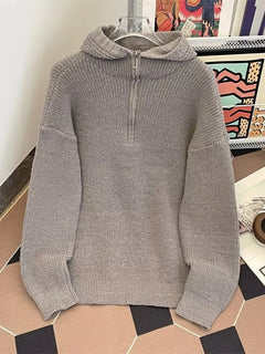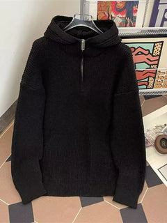 Men's Hooded Half Zip Knit Sweater