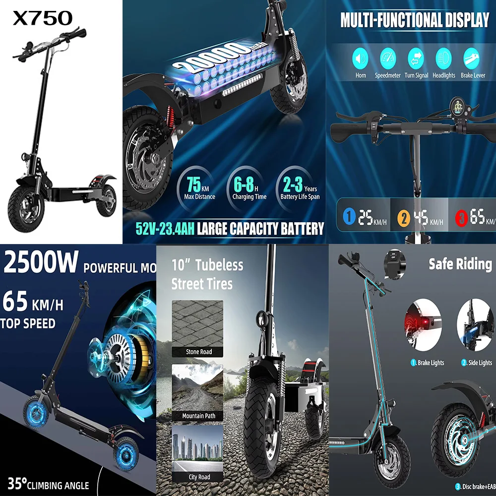 x750 Electric Scooter: 1600w/2500w 52V 20Ah 23.4Ah 65km/h 80km