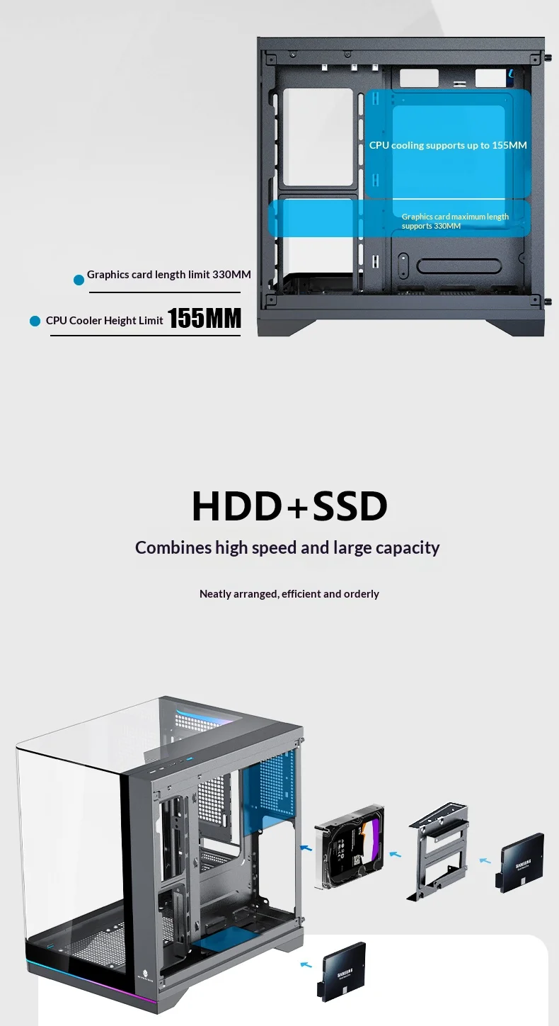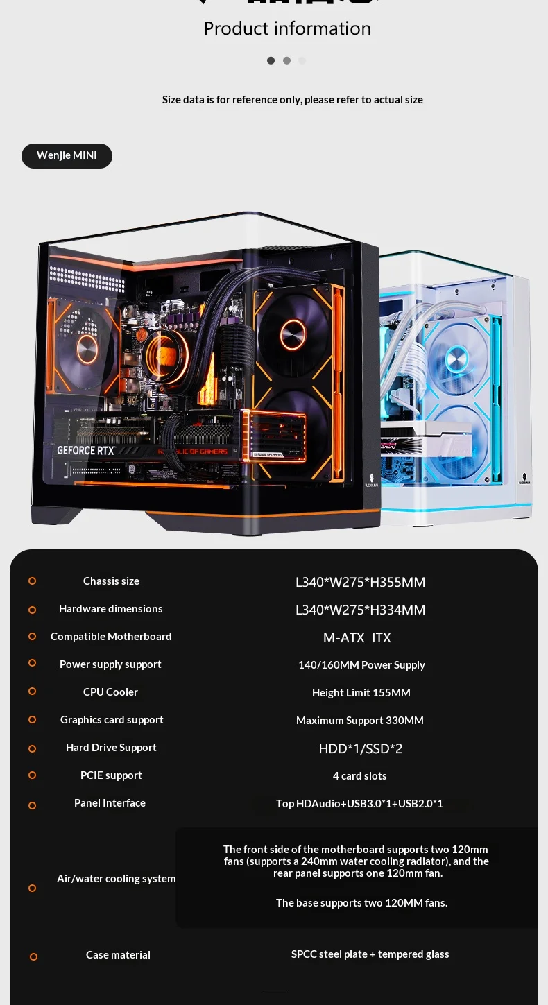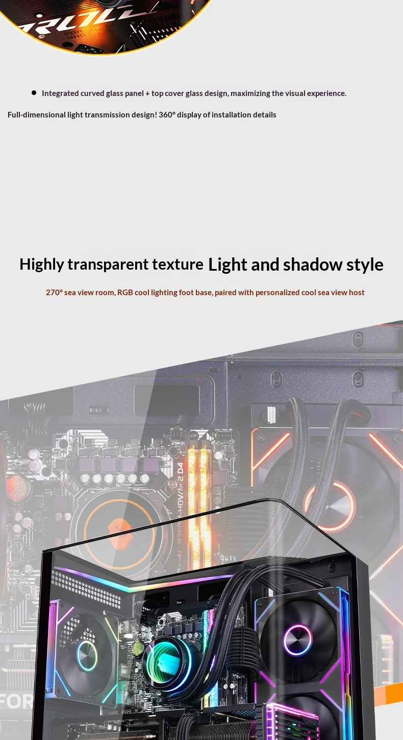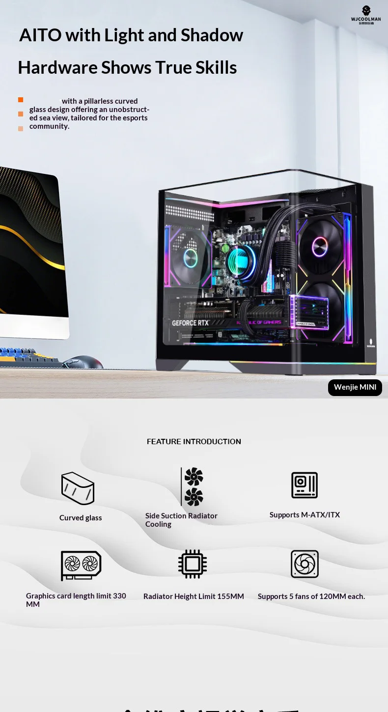 WJCOOLMAN AITO Mini MATX PC case RGB light strip 240 water cooler curved glass computer case