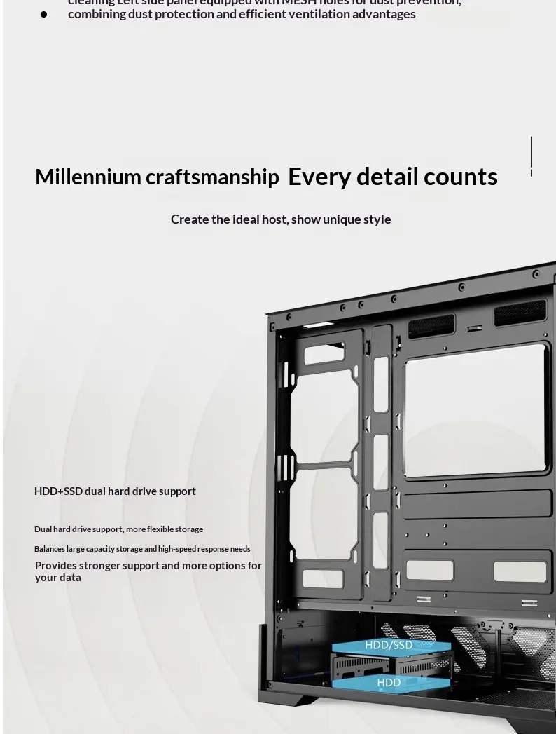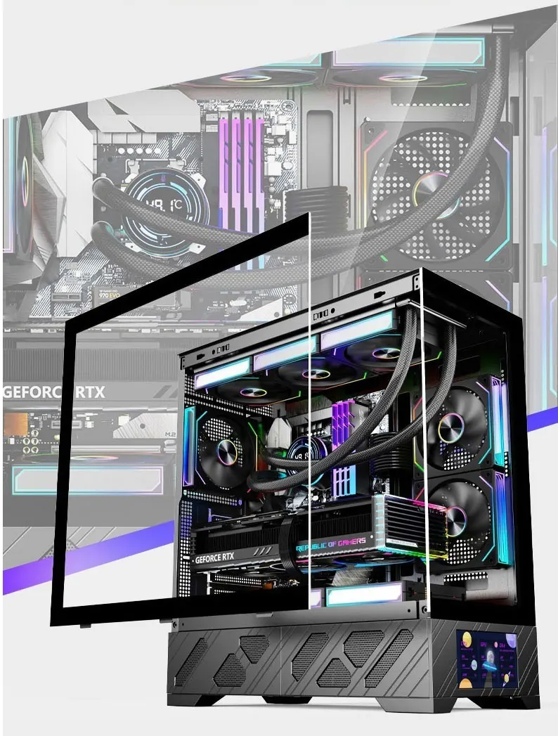 WJCOOLMAN Qianxi ATX computer case with 360 water cooling, ATX motherboard, digital display screen, scenic room