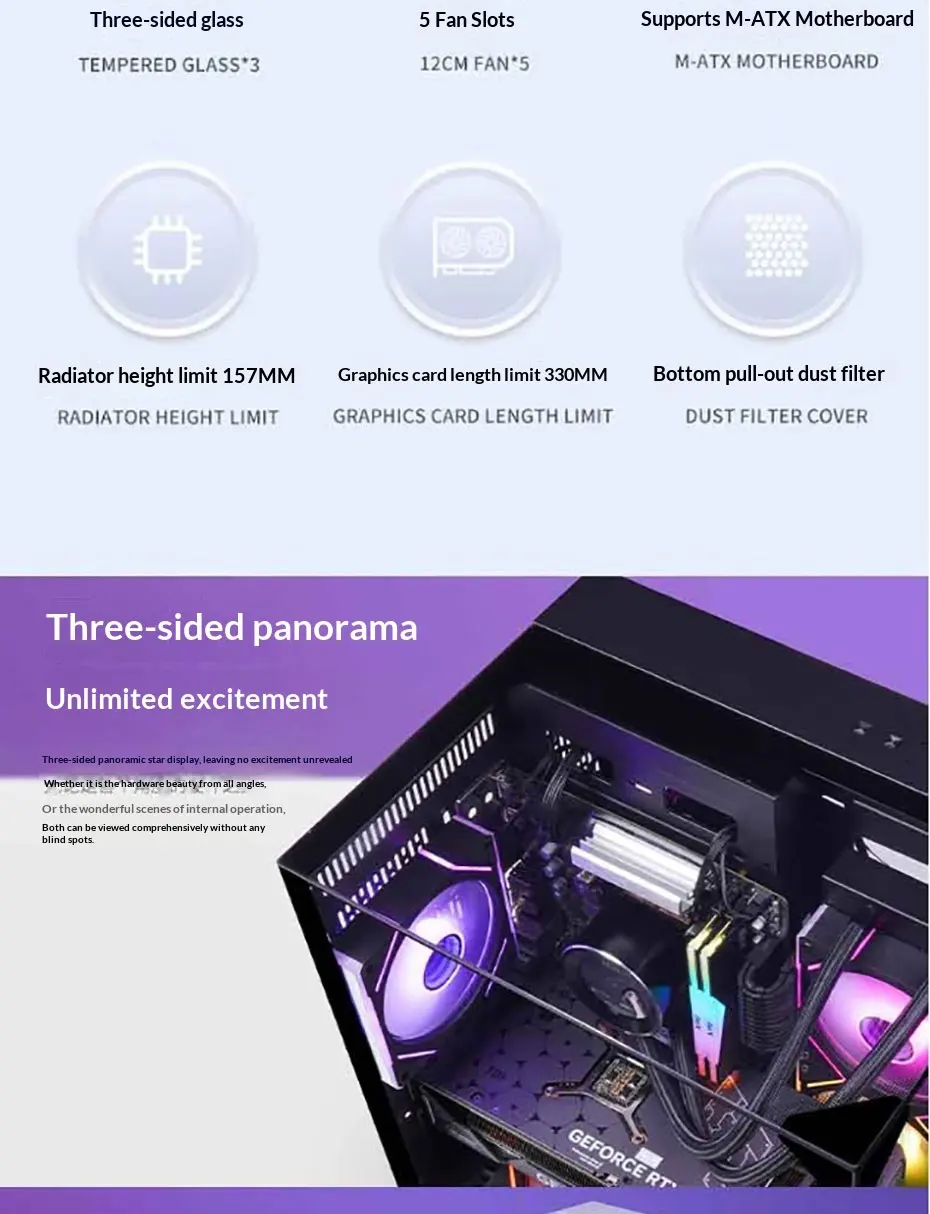 WJCOOLMAN Skyline S1 Panoramic view Side view Sea-view apartment Computer case M-ATX case Support 240 Water Cooling