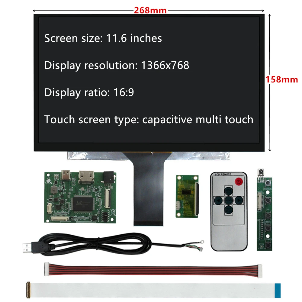 This 11.6-inch HD portable display kit is a versatile, high-performance solution for professionals, developers, and tech enthusiasts. With 1920×1080 (Full HD) or 1366×768 (HD) resolution options, it delivers crisp visuals for work, coding, or entertainment. Equipped with USB capacitive multi-touch support, HDMI/Type-C input, and a remote control, it’s perfect for use as a secondary monitor, development tool, or portable screen.