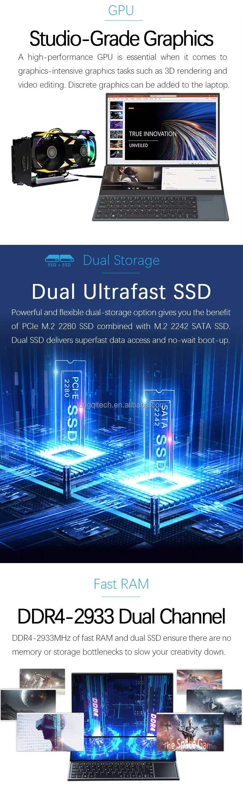 ROM: Options:128GB /256GB/512GB/1TB/2TB/4TB SSD