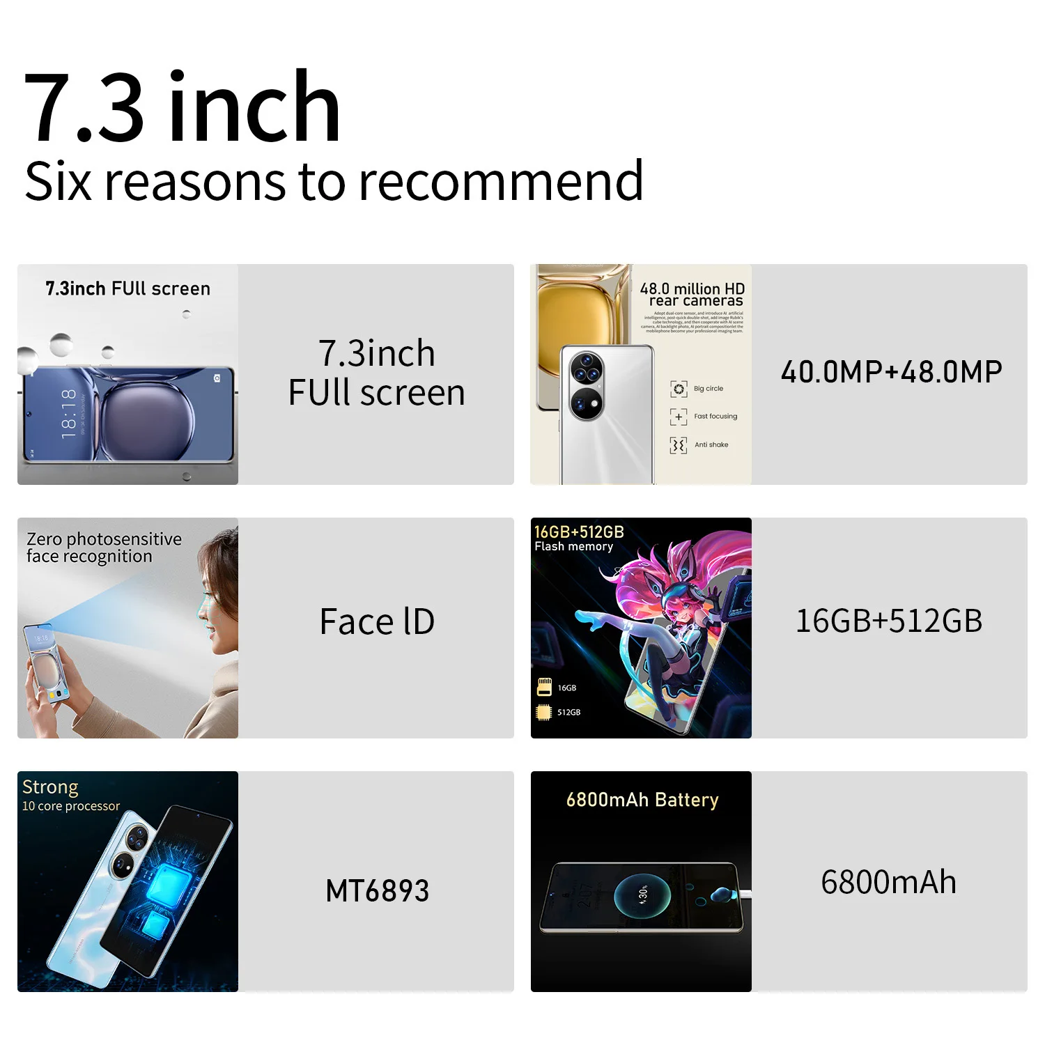 4.Screen: 7.3HD+ Full Display 1440*3200