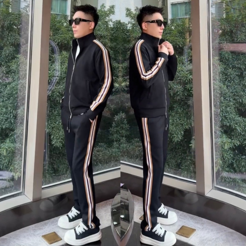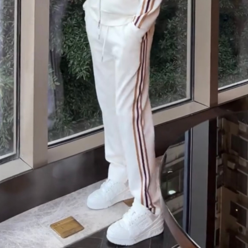 Affordable Luxury Patchwork Striped Casual Sports Suit High-End Stand-Up Collar Jacket And Pants Two-Piece Set