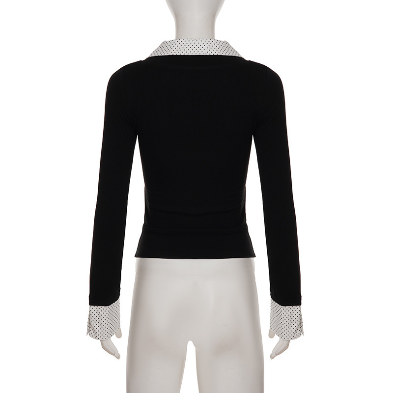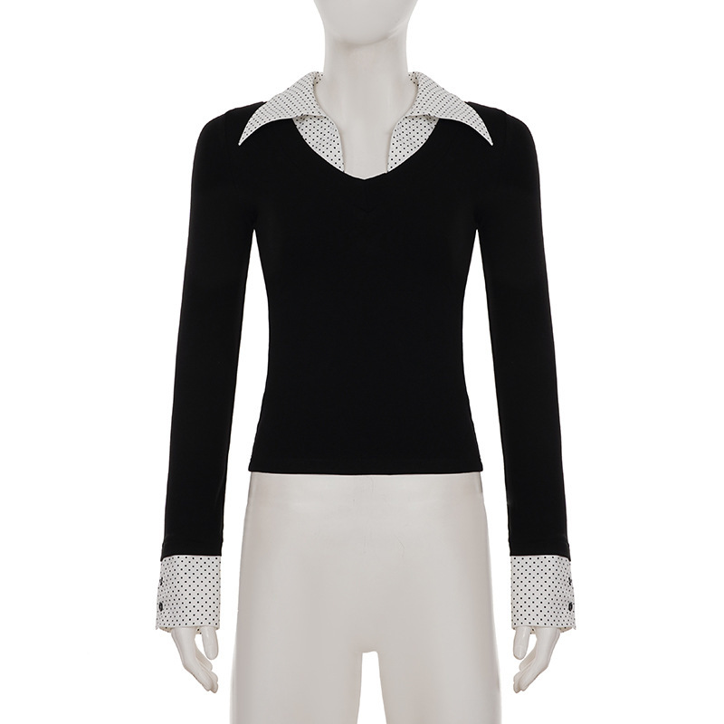 American Collegiate-style Long-sleeve Shirt With A Notched Collar And A Bold Print