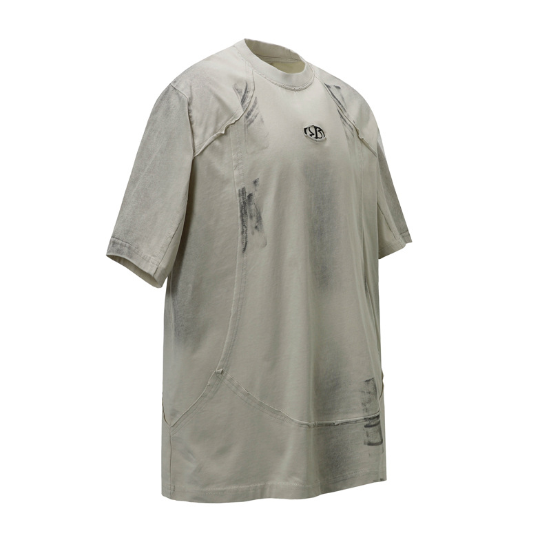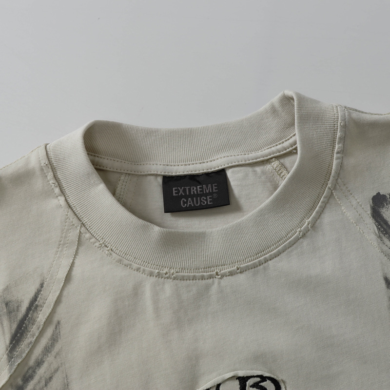 American Style High Street Fashion Brand Retro Distressed Dirty Short Sleeve