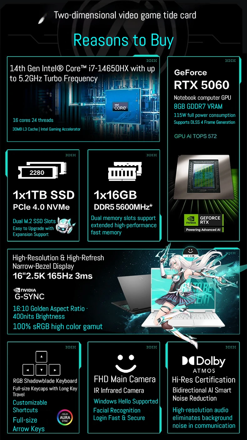 Screen: 16 inch 2.5K-165Hz High brush high color gamut gaming screen