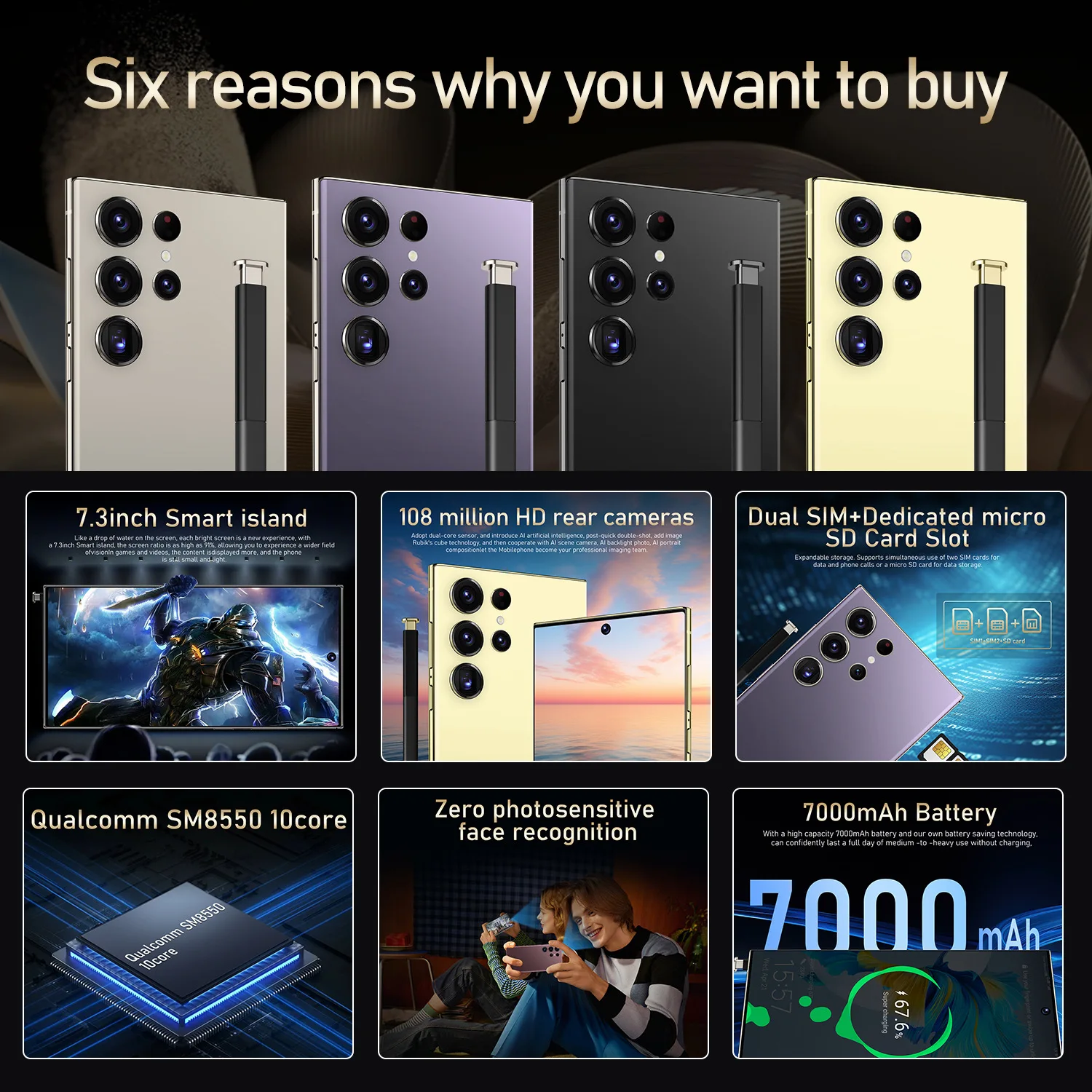 The S25 ULTRA Original Mobile Phone features a 108MP camera combination. The main camera sports a large f/1.8 aperture and 1.28um