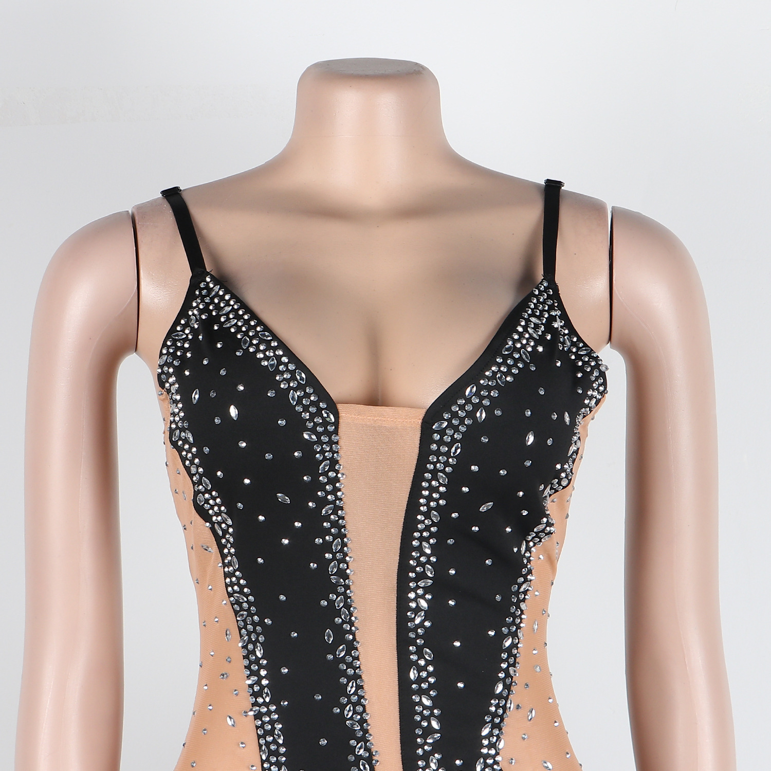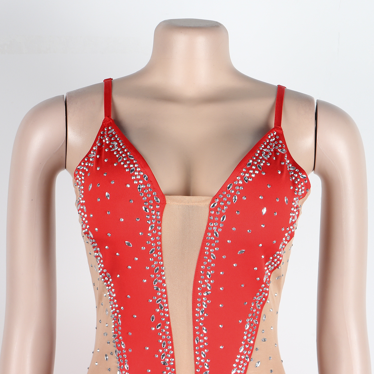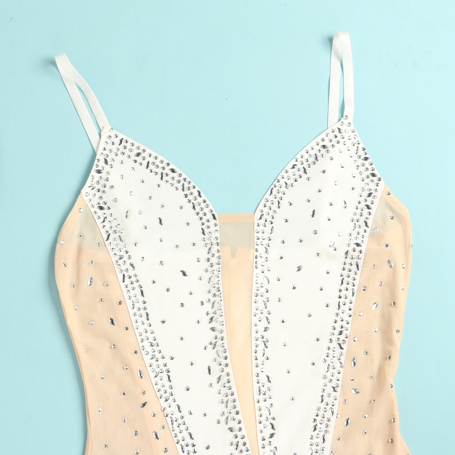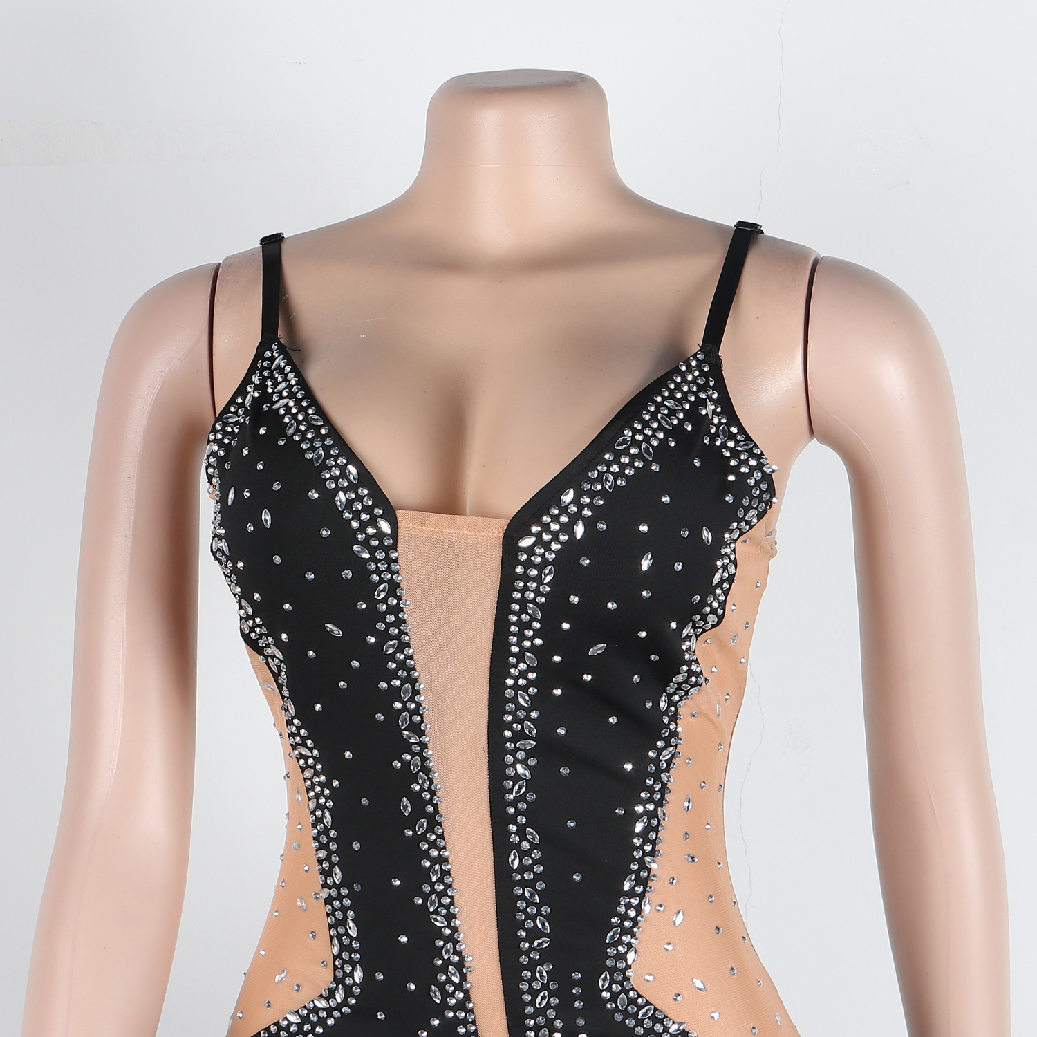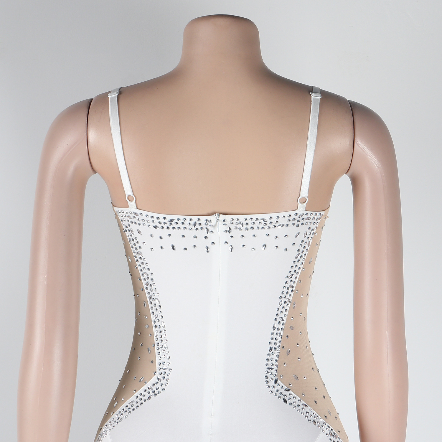 CM.YAYA Evening Dresses Women Diamonds Hot Drill Spaghetti Strap Mesh Patchwork High Low Asymmetrical Maxi Sexy Prom Dress