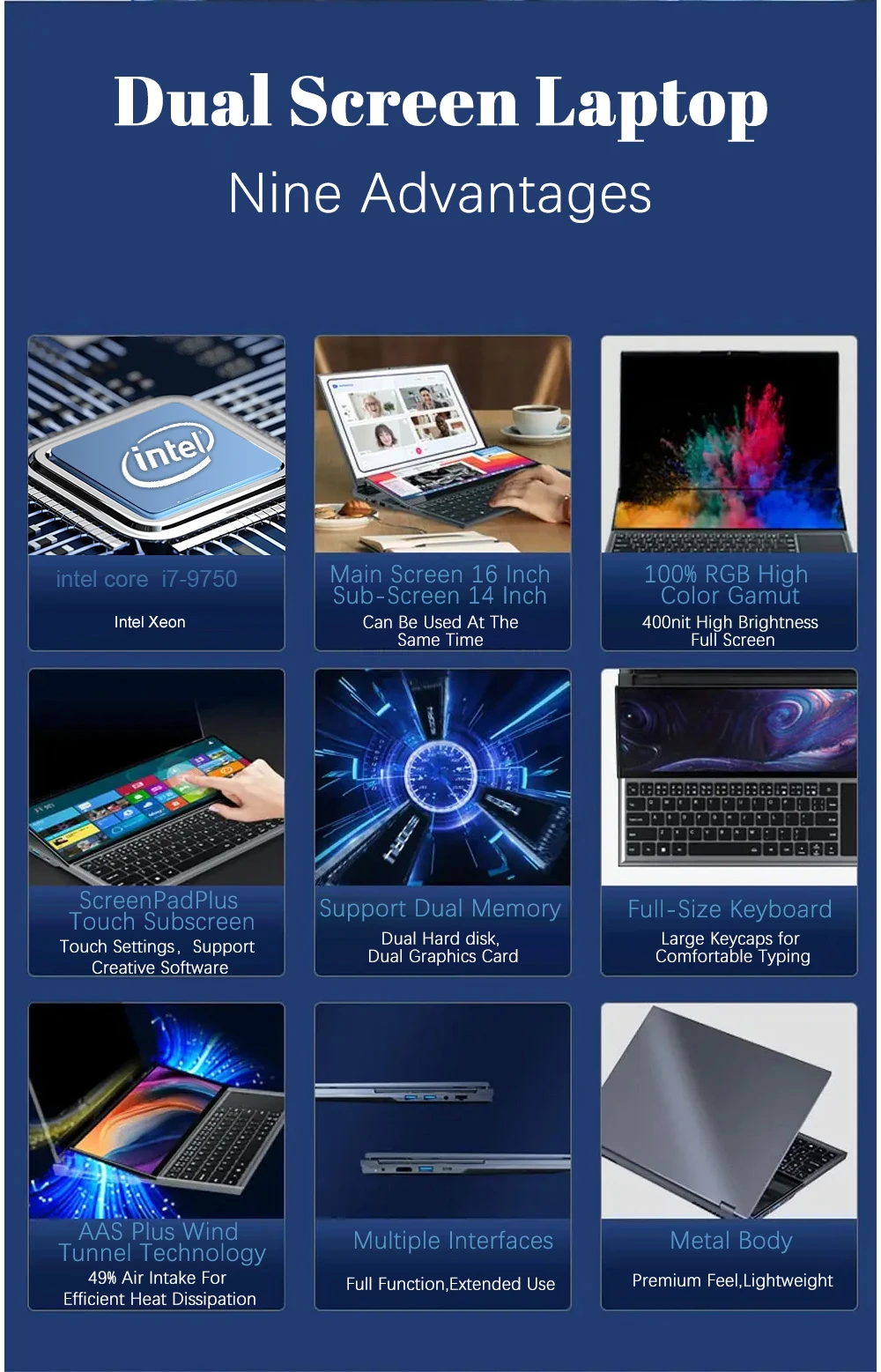 CRELANDER X16 Dual Screen Laptop Notebook Computer 16 Inch Touch Screen Intel Core I7 Gen Touch Screen Business Laptops