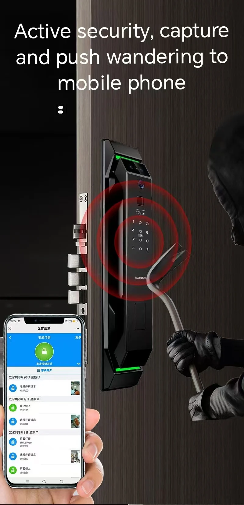 Unlock way: Phone +Fingerprint + Password + Card + Key
