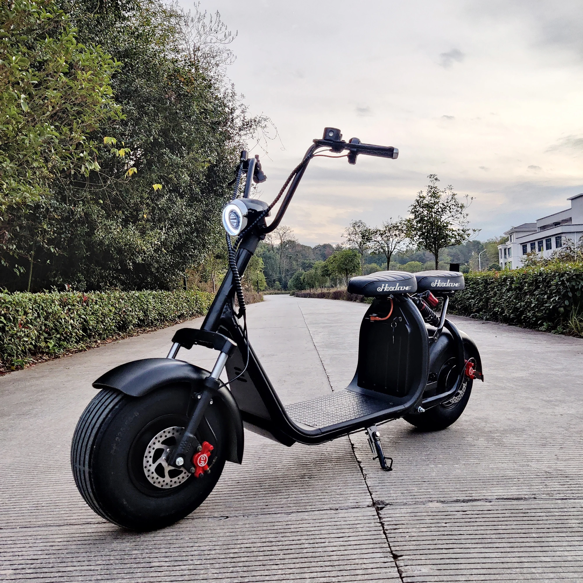 18 Inch road fat tires. Scooter has good grip on flat roads, making turning and acceleration more convenient. No noise, comfortable driving.