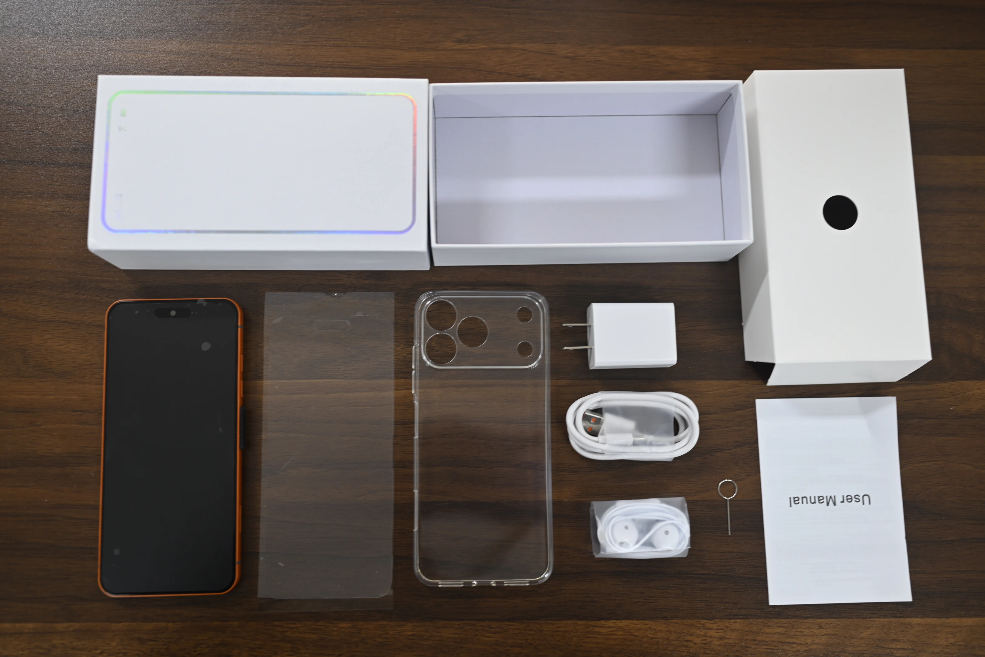 Mobile phone + packaging box + instruction manual + charging head + Type-C cable + headphones + phone protection film + protective case |