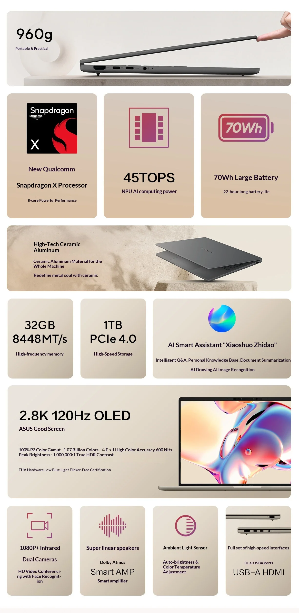 For Lingyao 14Air Qualcomm Snapdragon Edition 2.8K 120Hz High Color Gamut SSD Lightweight Design Business Gaming Laptop