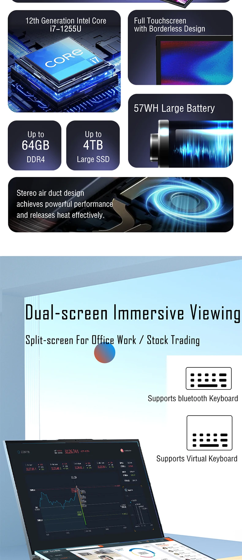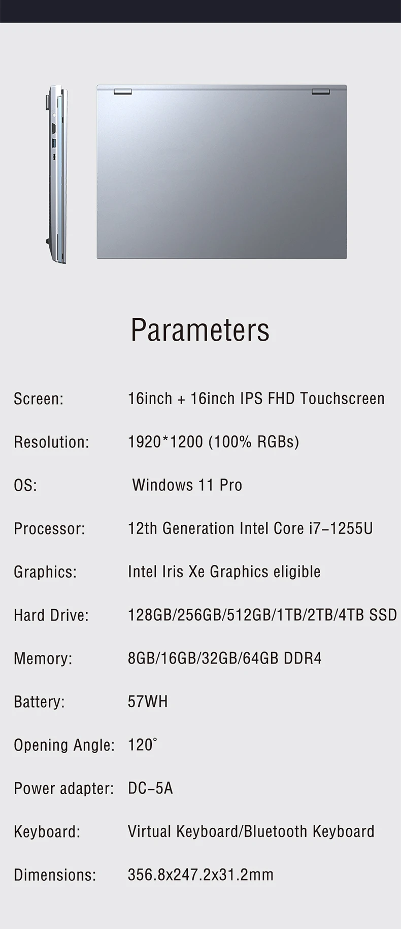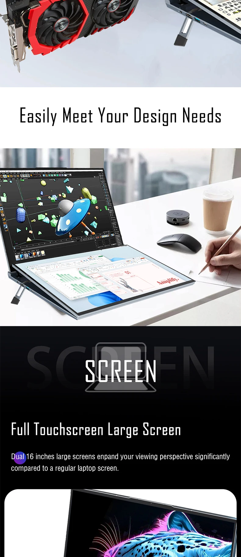 Gaming Laptop 16'' + 16'' Dual Laptop Screen I7-1260P I7-1360P Touch Laptop