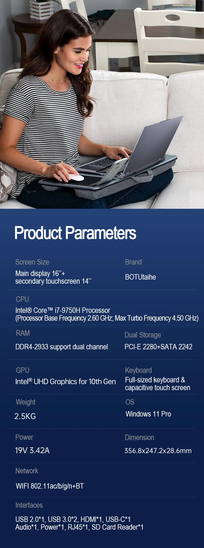 Gaming Laptop Dual-Monitor I7 Laptop 16 Inch Touch Screen 64GB RAM 4TB SSD Intel Core I7-9750H Laptops