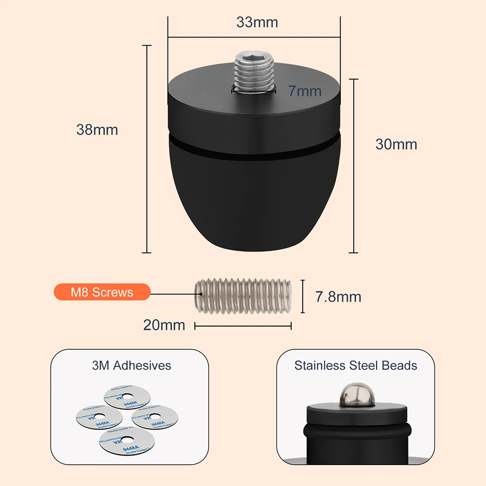 HiFi 4Pcs Amplifier Feet Aluminum Alloy Stainless Steel Ball with M8 Screw Shock Absorber Pad Feet Stands for Speakers 33*30MM