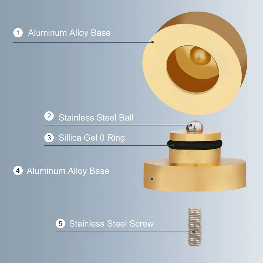 HiFi SP330 4Pcs 33*30MM Aluminum Alloy Stainless Steel Ball with M8 Screw Shock Absorber Pad Feet Stands for Speakers Amplifier
