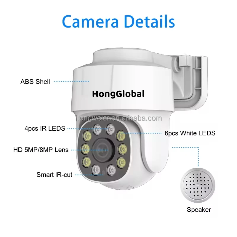 HongGlobal 5MP Monitor Indoor Smart Video POE IP PTZ Camera POE 360 Degree Wireless Surveil CCTV Network Home Security Camera
