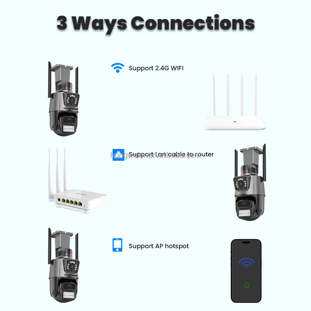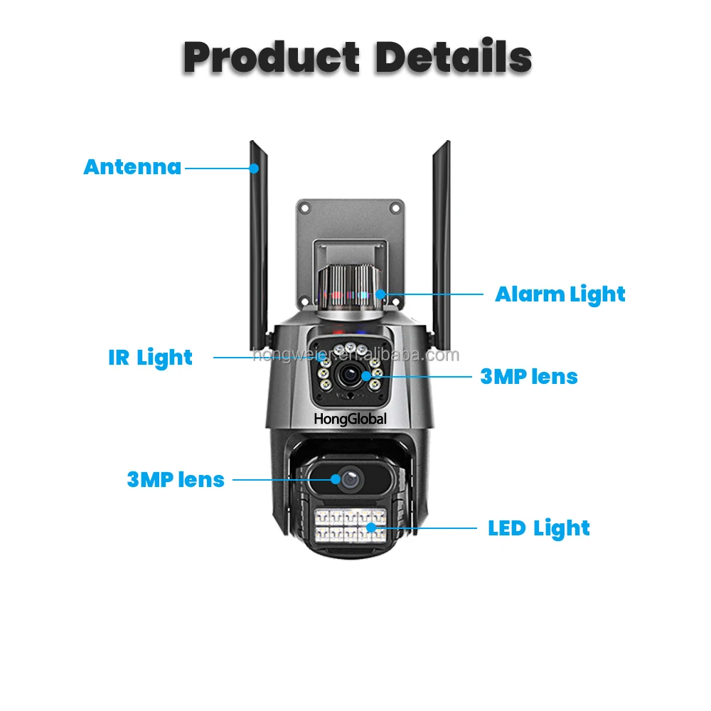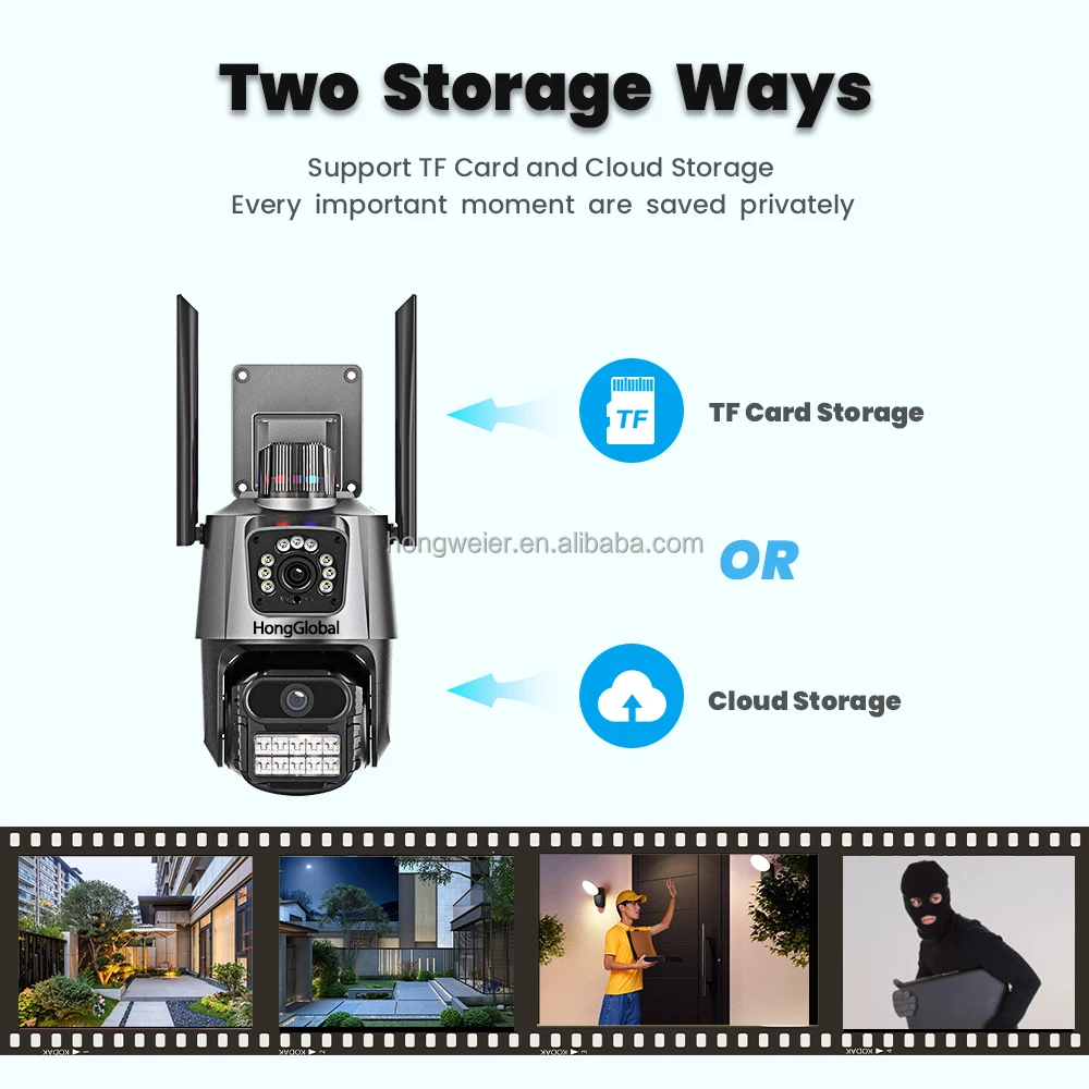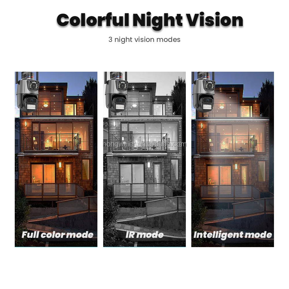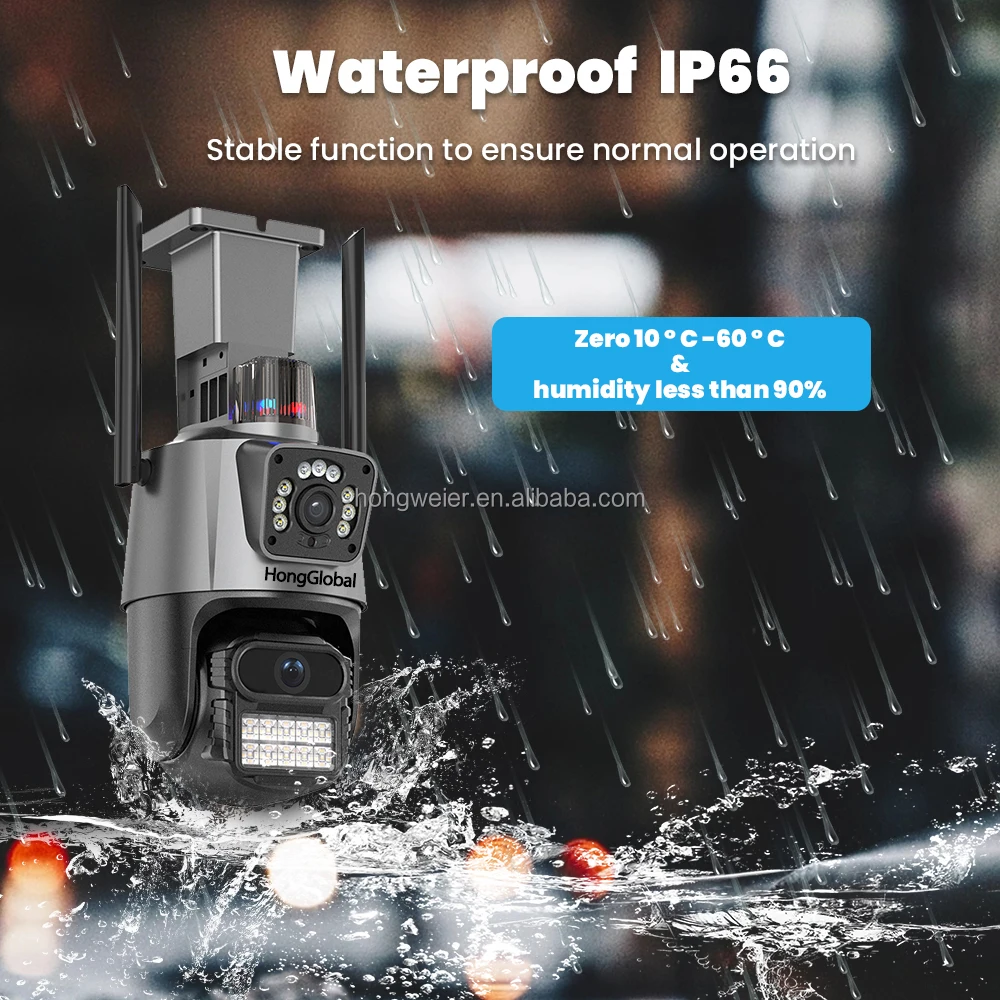 HongGlobal 8MP HD Video Smart Outdoor PTZ Camera ICSee Dual Lens 4K Monitor Wireless WiFi Home Security CCTV Surveillance Camera
