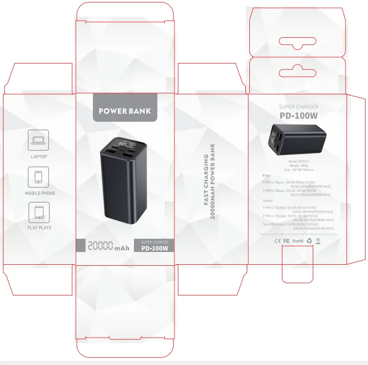 Output(USB*2PCS+Type-C*2PCS): 5V/3A,9V/3A,12V/3A,15V/3A,20V/5A
