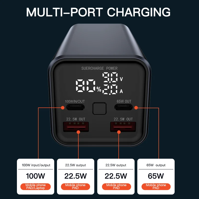Hot Selling New Product Laptop 20000mAh Metal Material Power Bank 65W 100W Fast PD Charging Quick Charge Powerbank