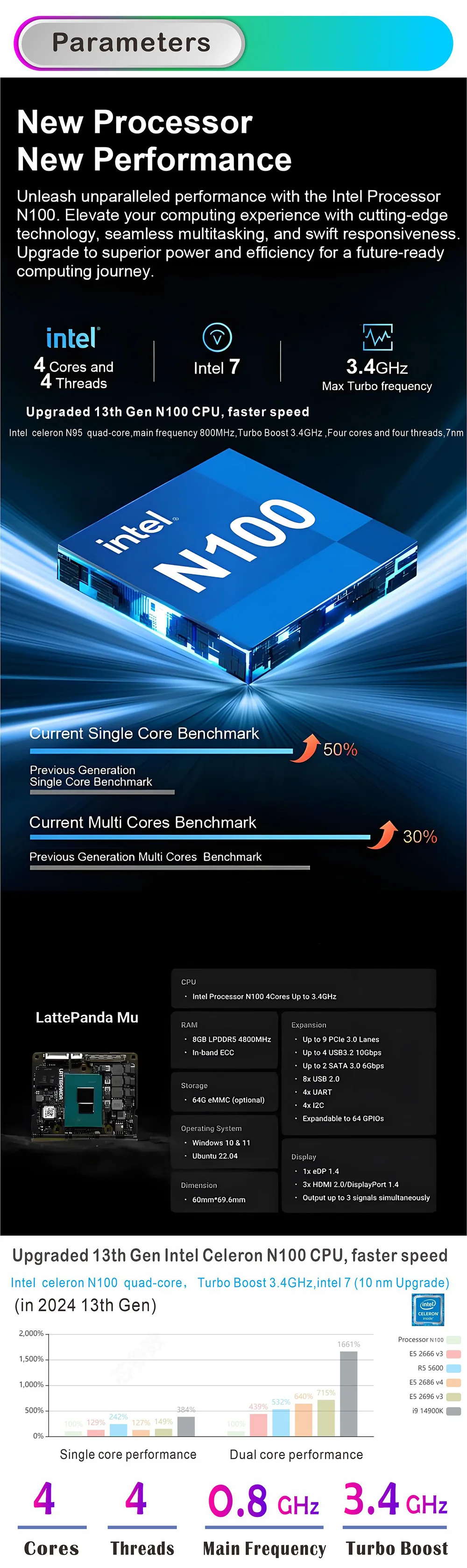 CPU: Intel Celeron N100 Quad core 0.8-3.4GHz