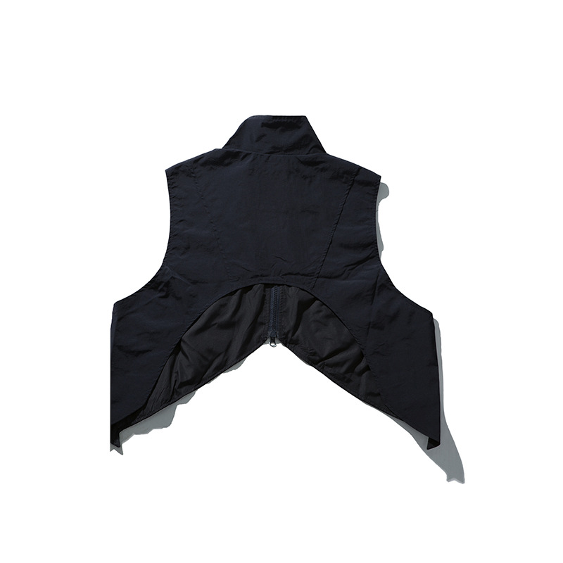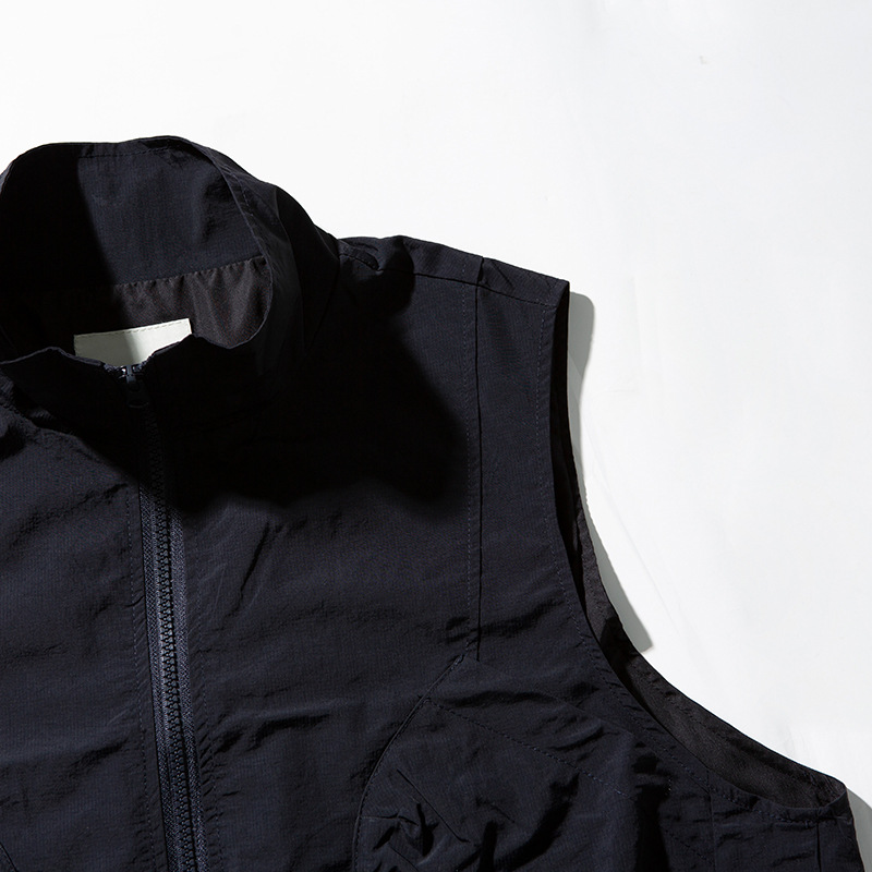Japanese-style Retro Solid Color Pocket Stand Collar Sleeveless Vest