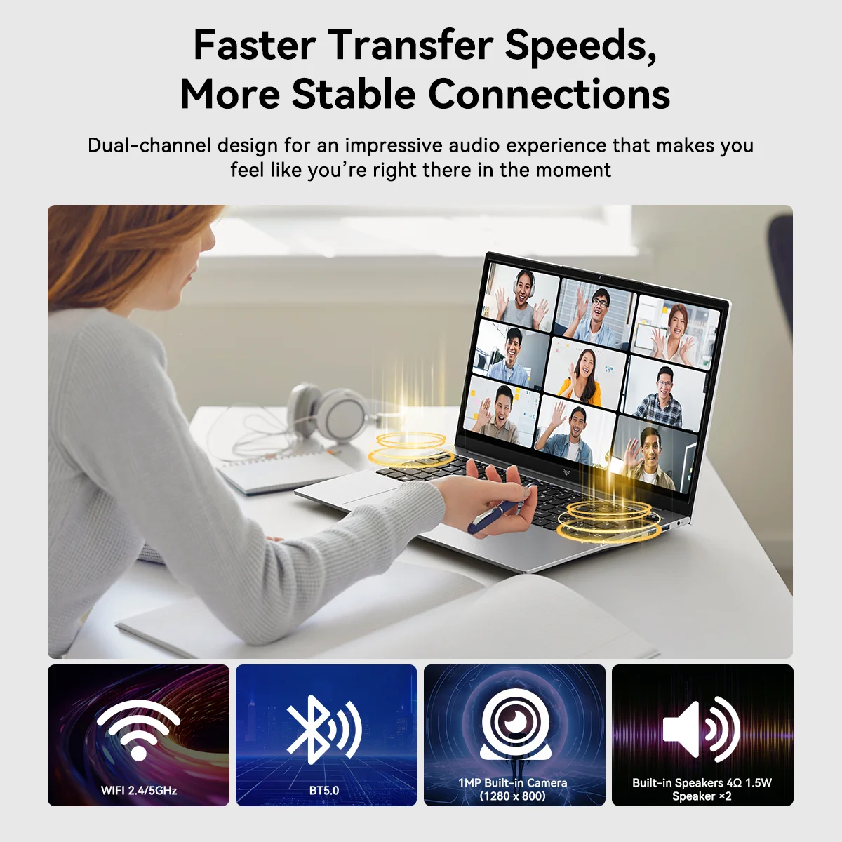 Dual-band WiFi (2.4G+5G) and Bluetooth 5.0 ensure faster, more stable wireless connections for video calls and accessory pairing.