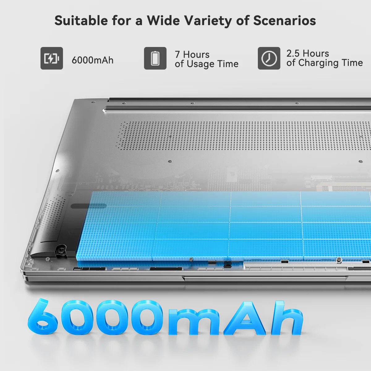 6000mAh high-capacity battery provides up to 7 hours of continuous use, keeping you productive all day.