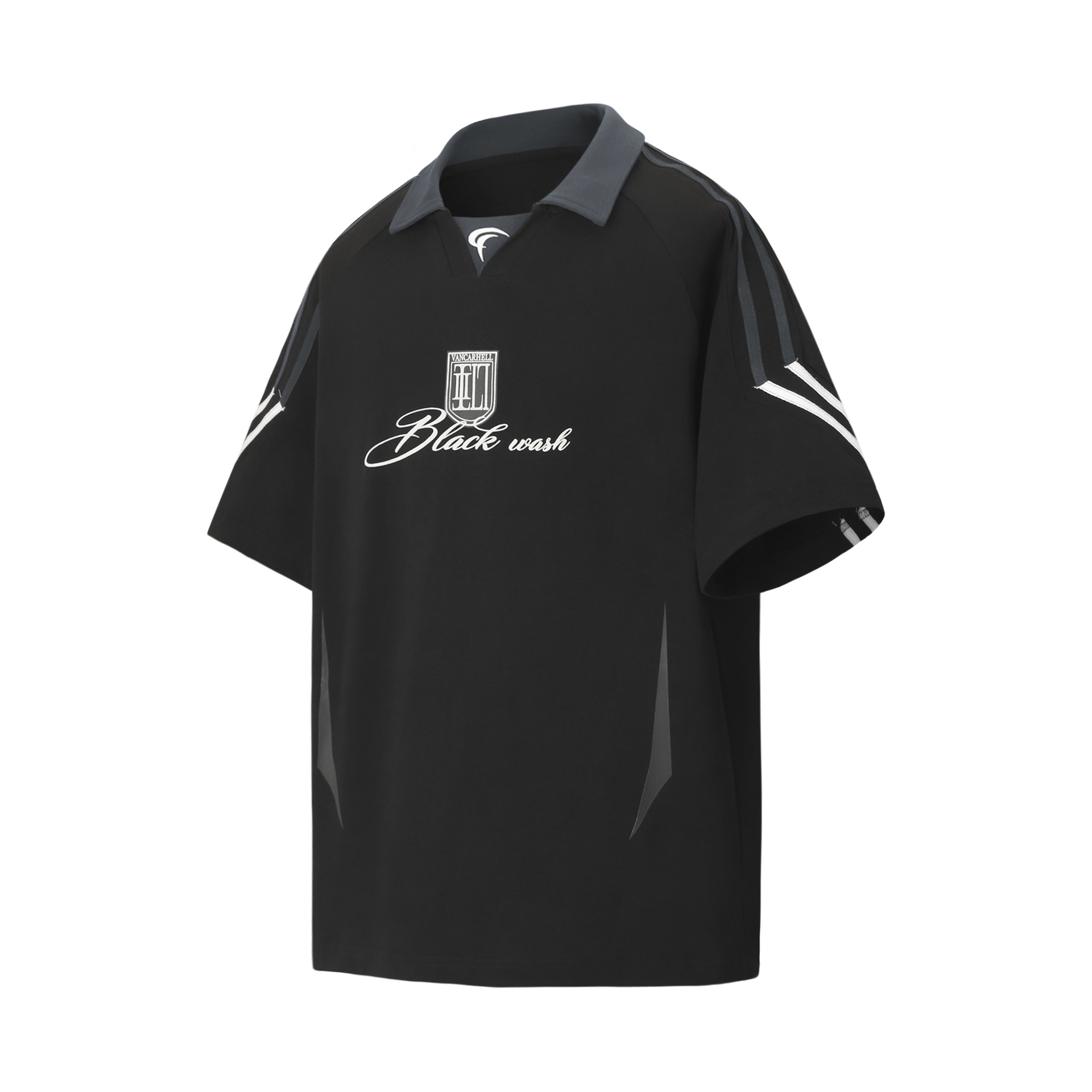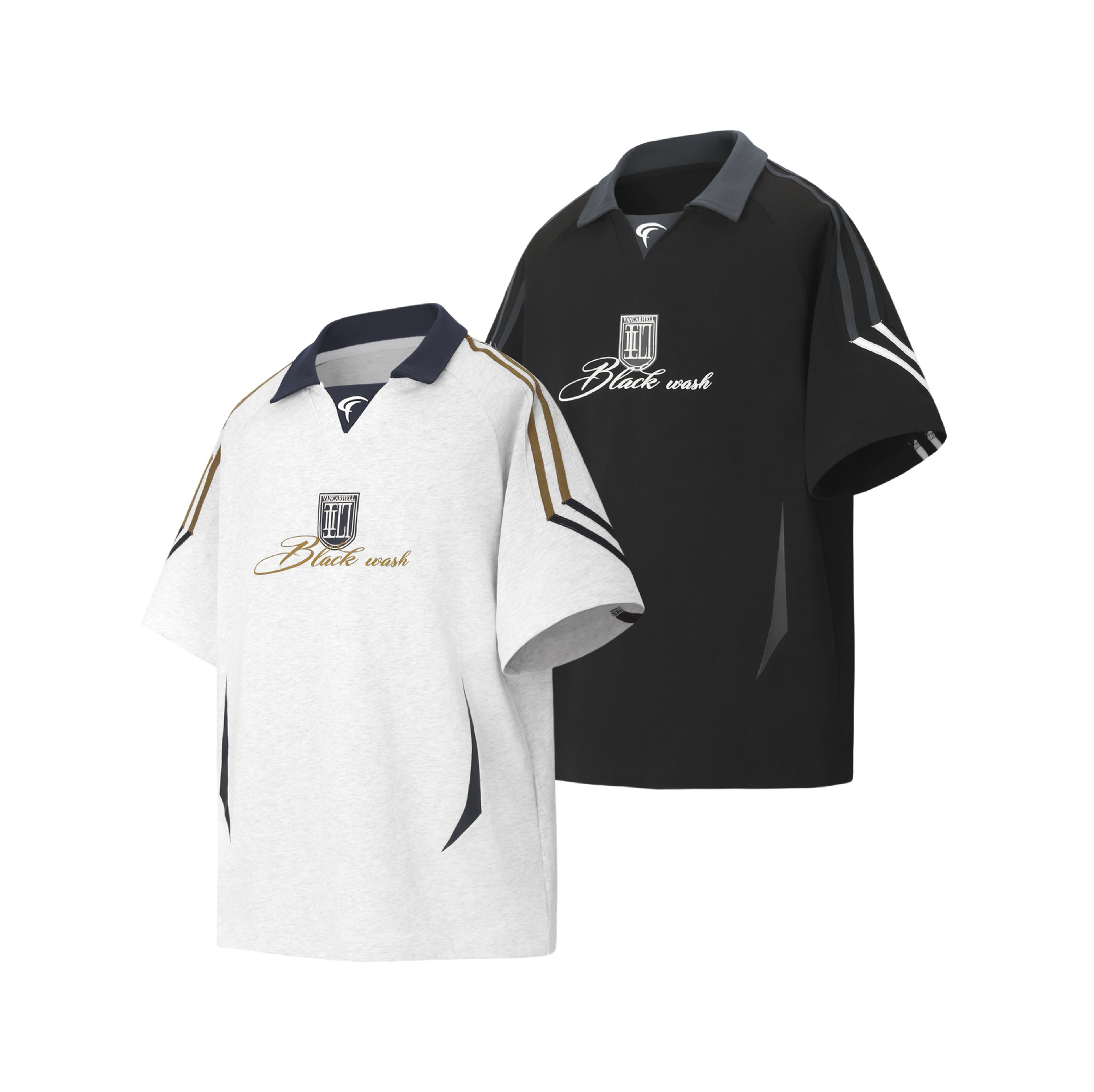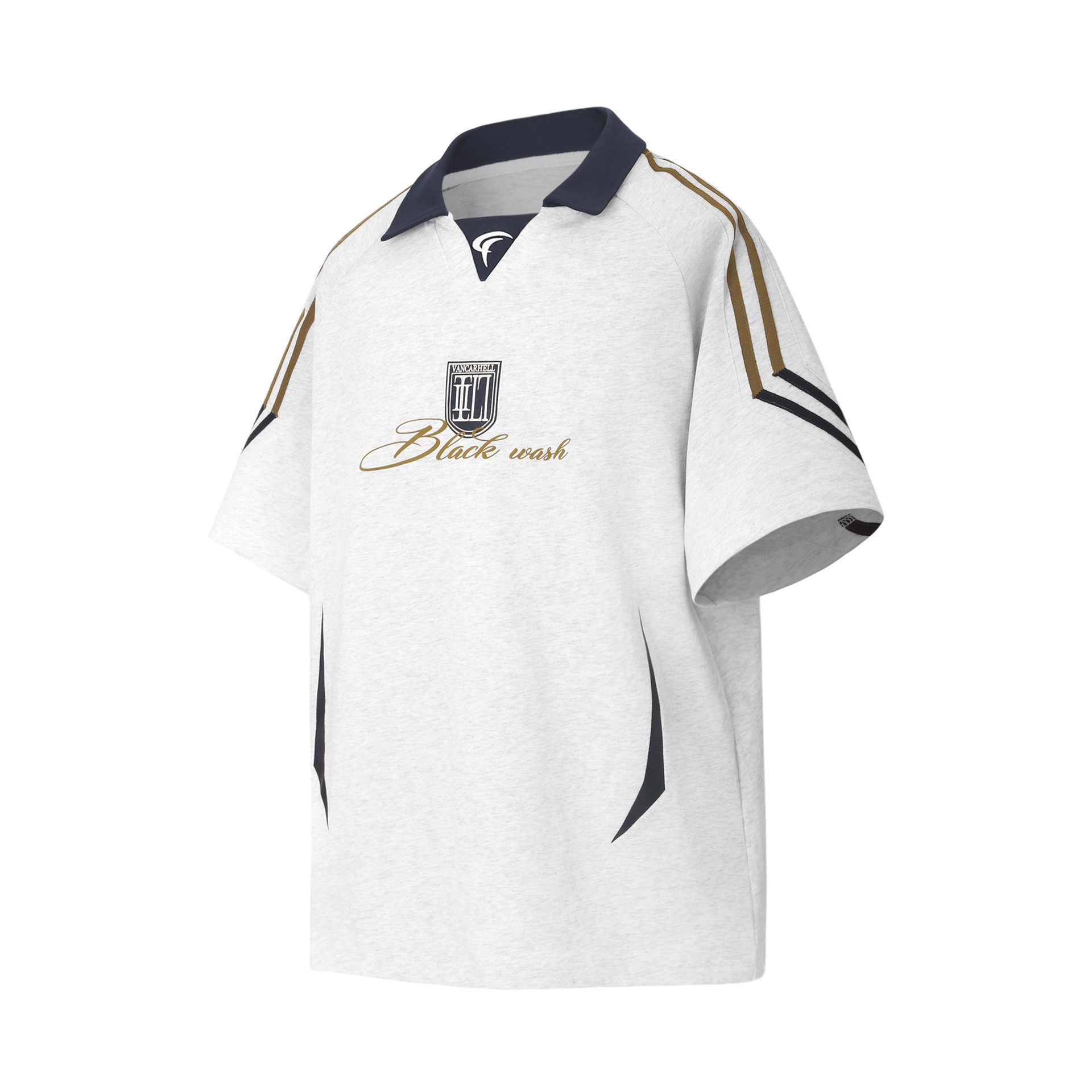 Lapel Sweatshirt Locomotive Style V-neck Patchwork Short-sleeved T-shirt For Men And Women