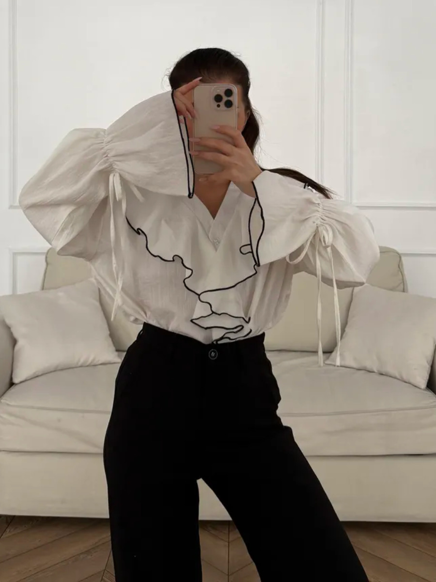 Layered Ruffled Blouse With A Cardigan Top