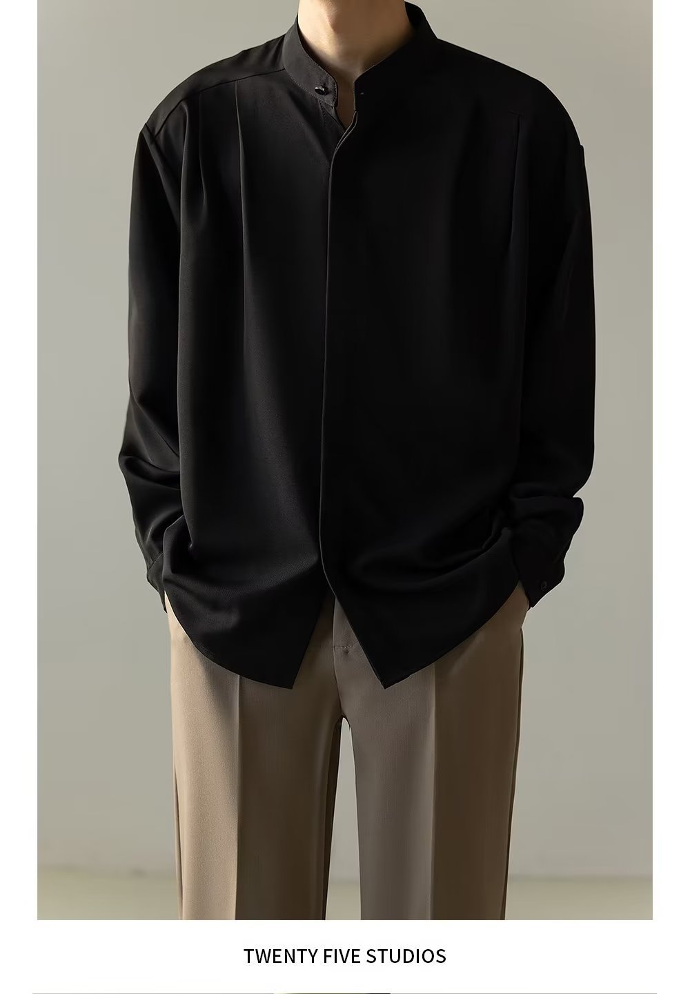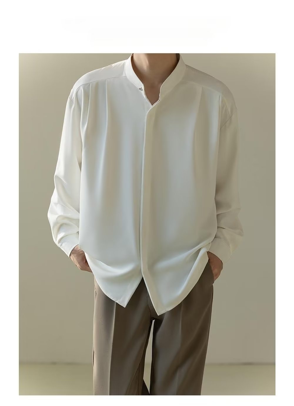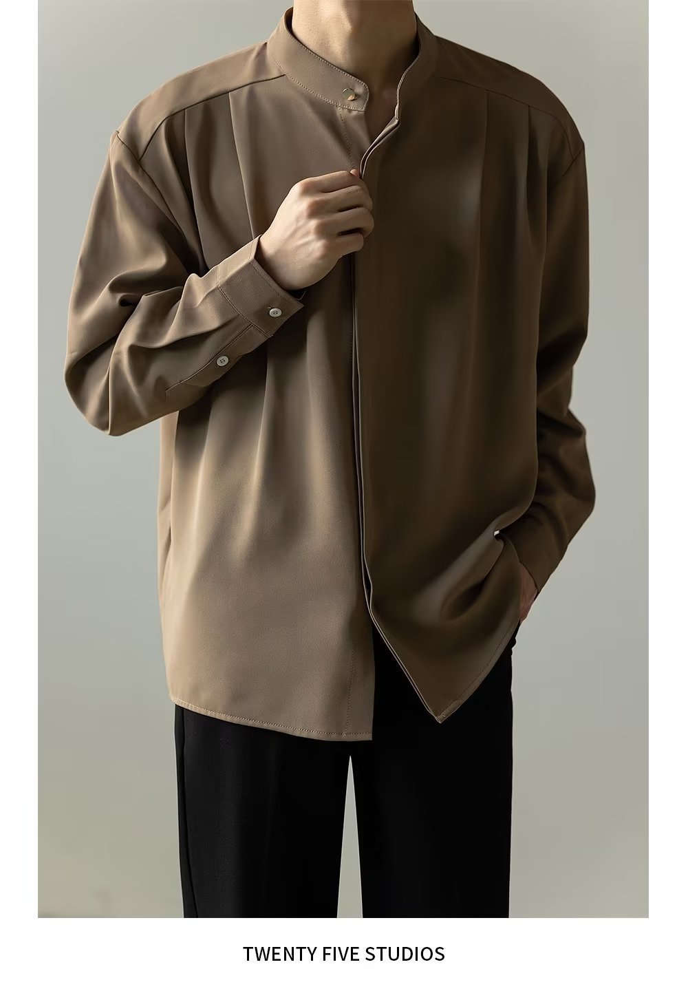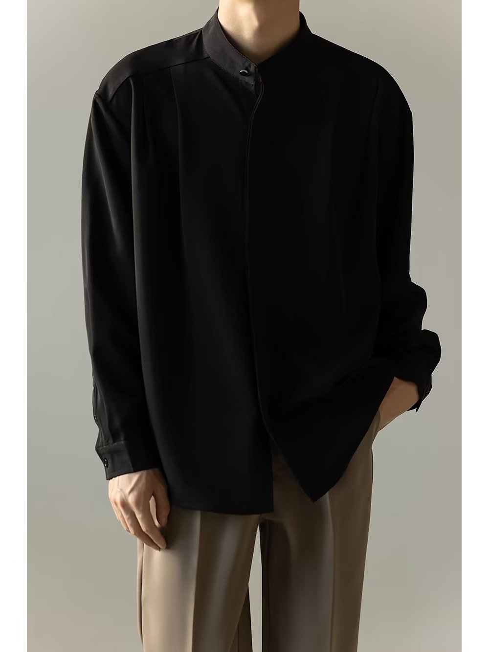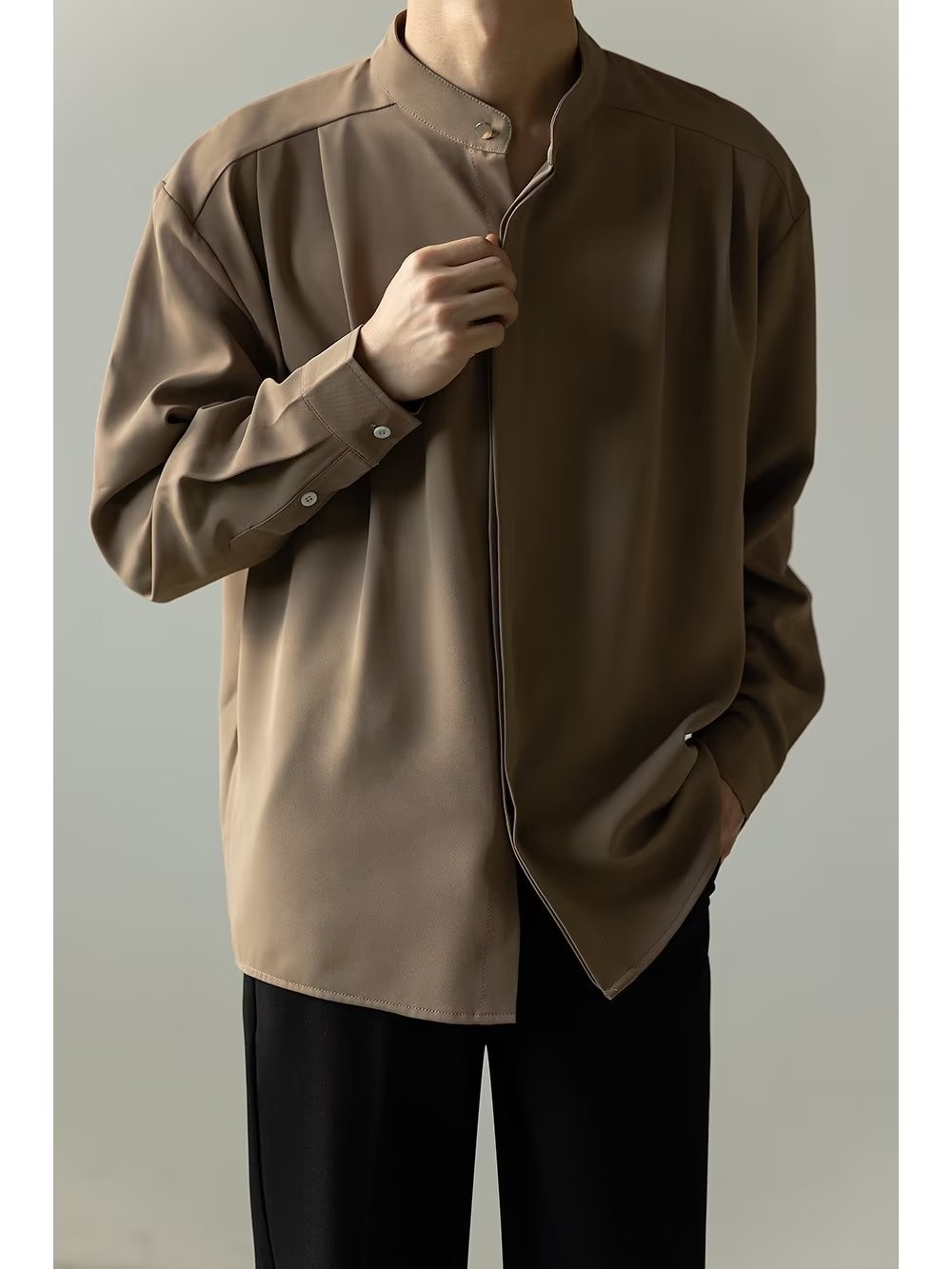 Mens Casual Loose-fitting Long-sleeve Shirt With A Stand-up Collar