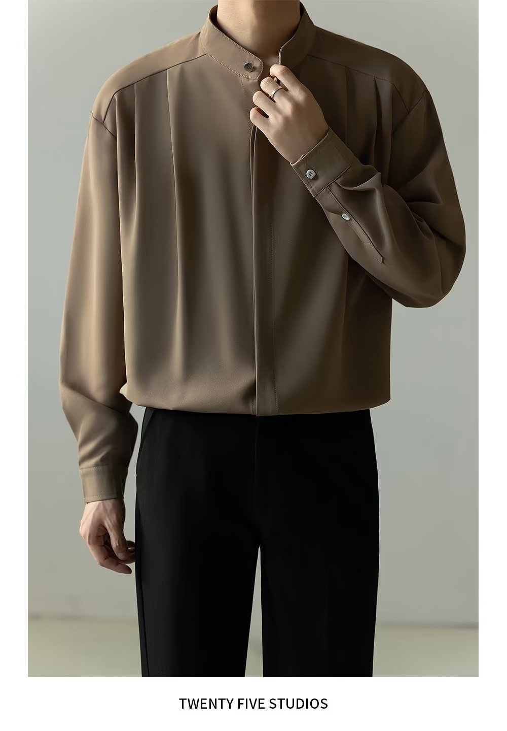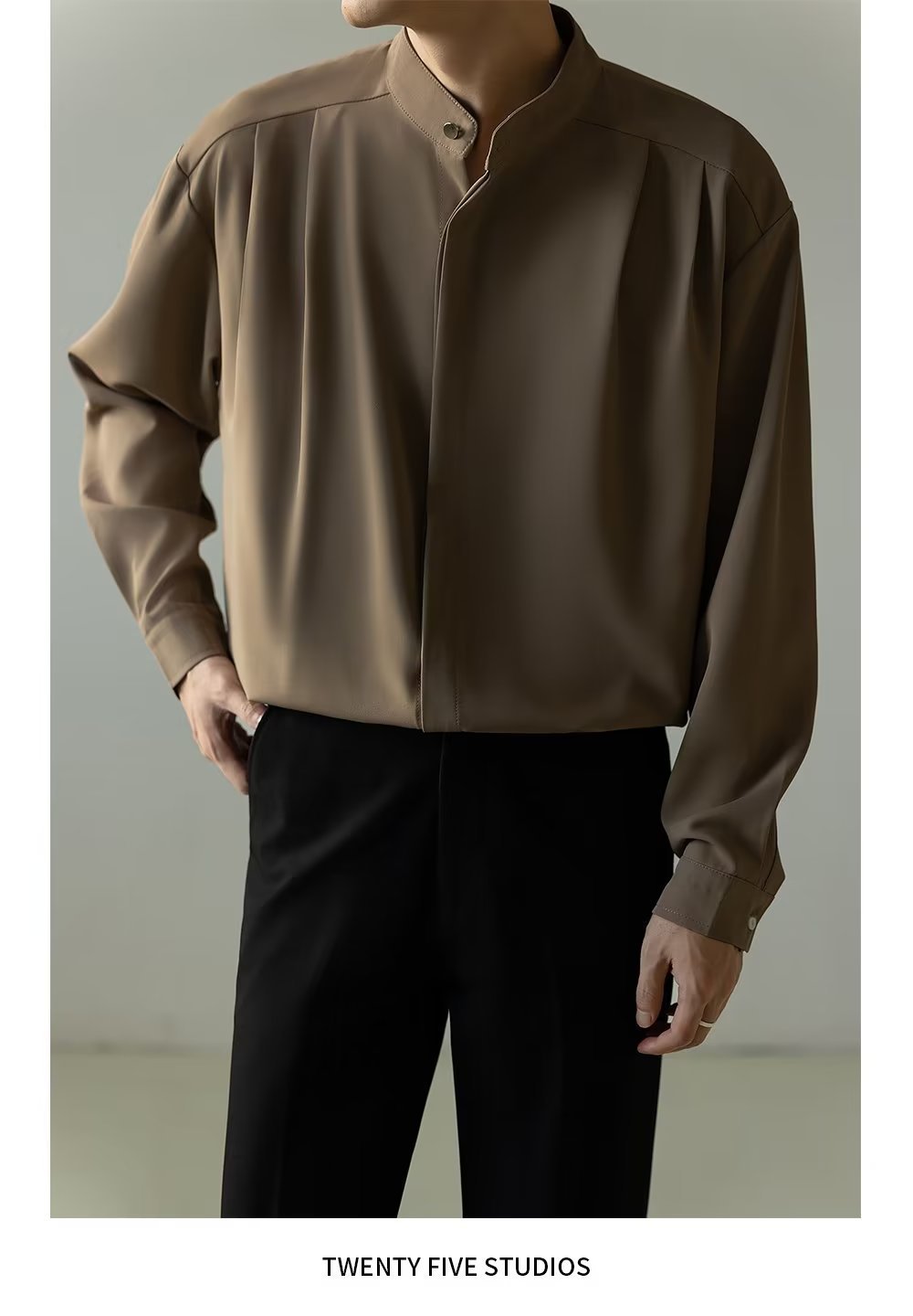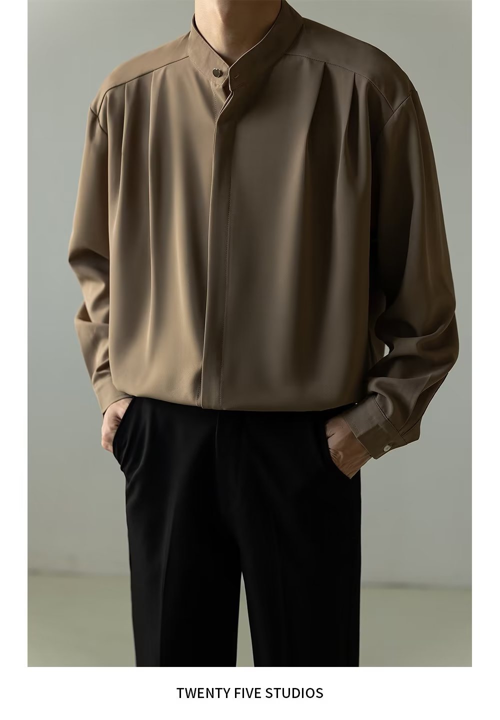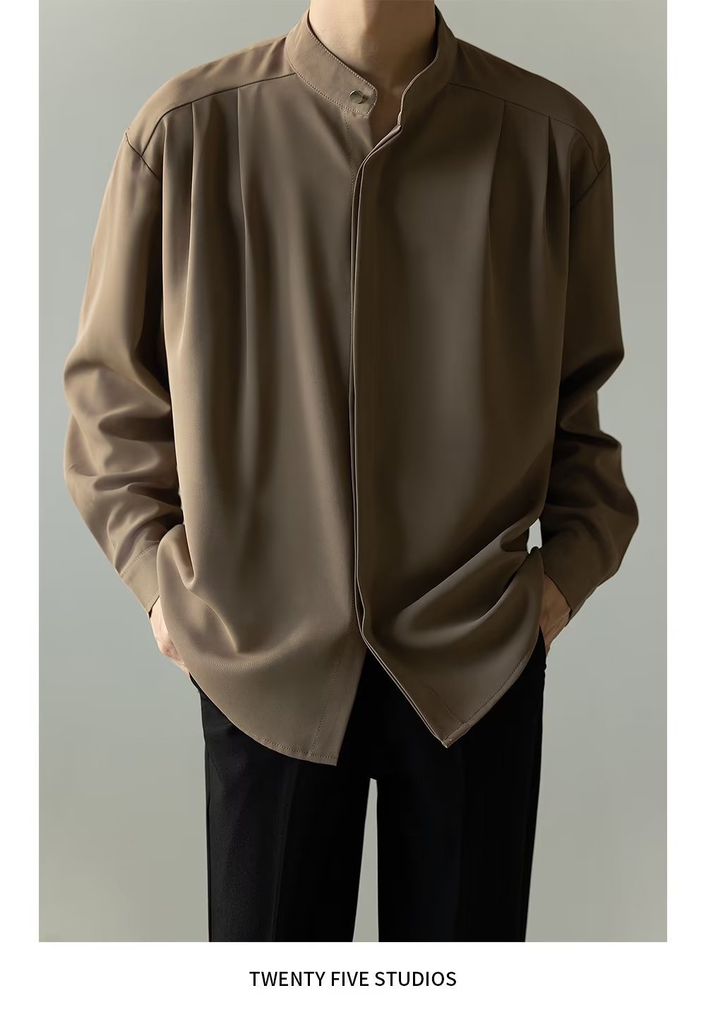 Mens Casual Loose-fitting Long-sleeve Shirt With A Stand-up Collar