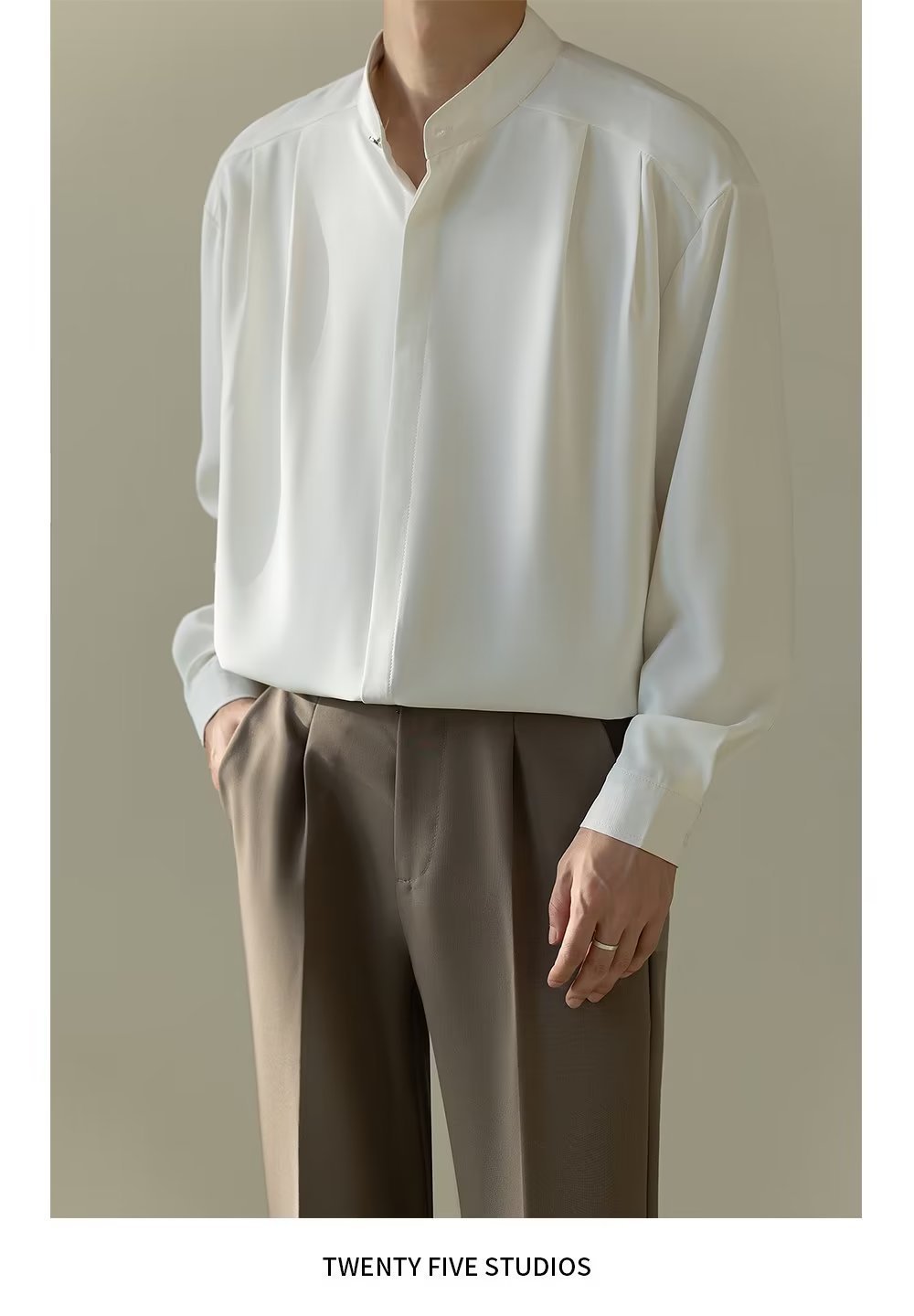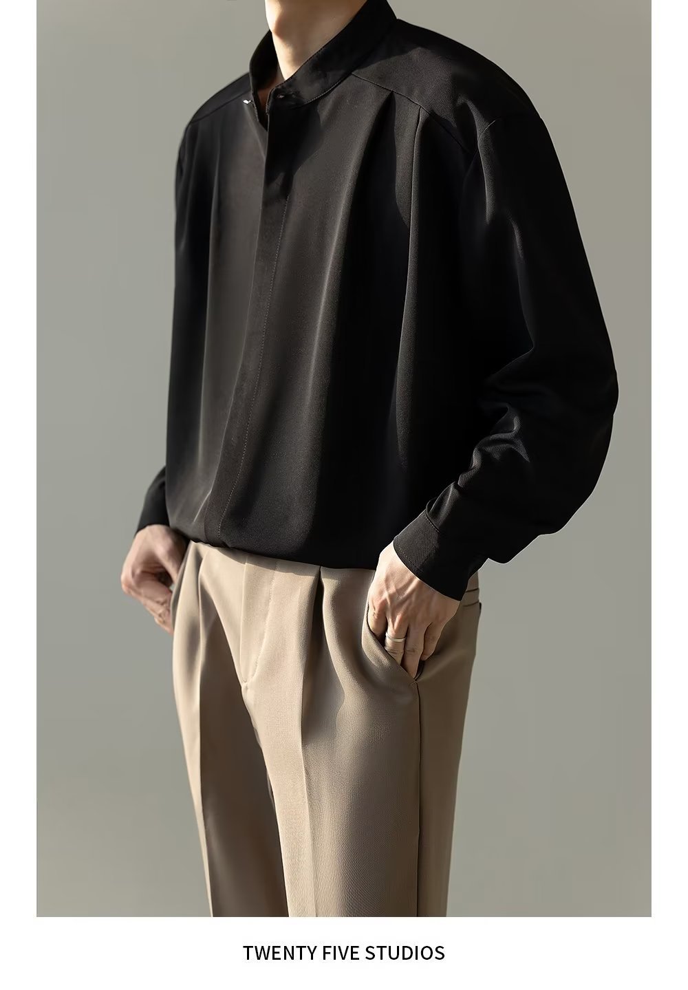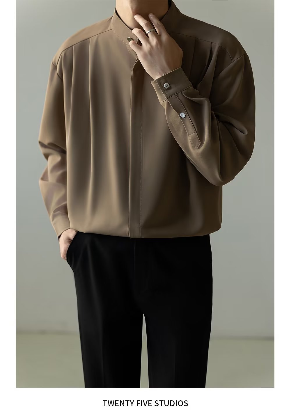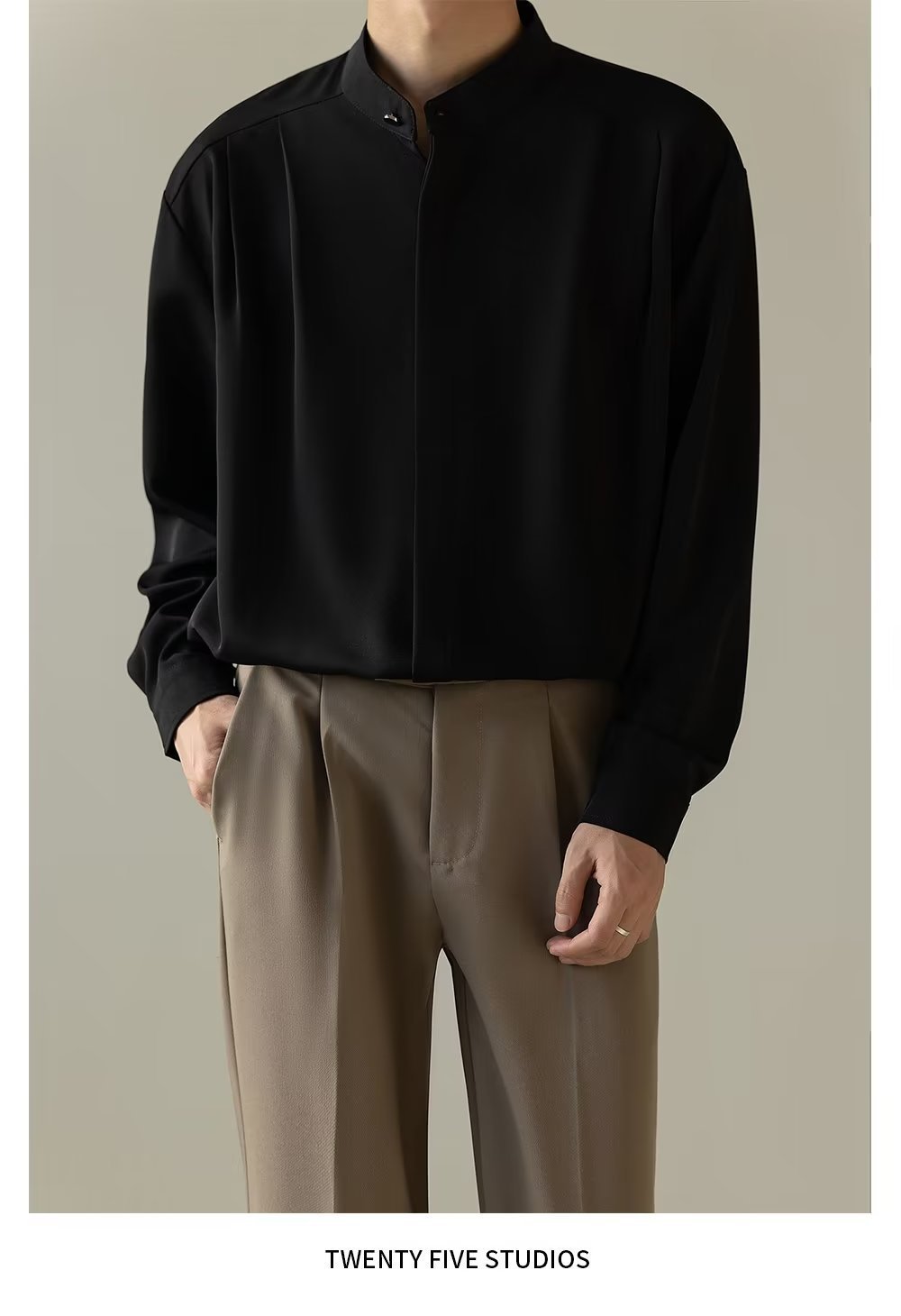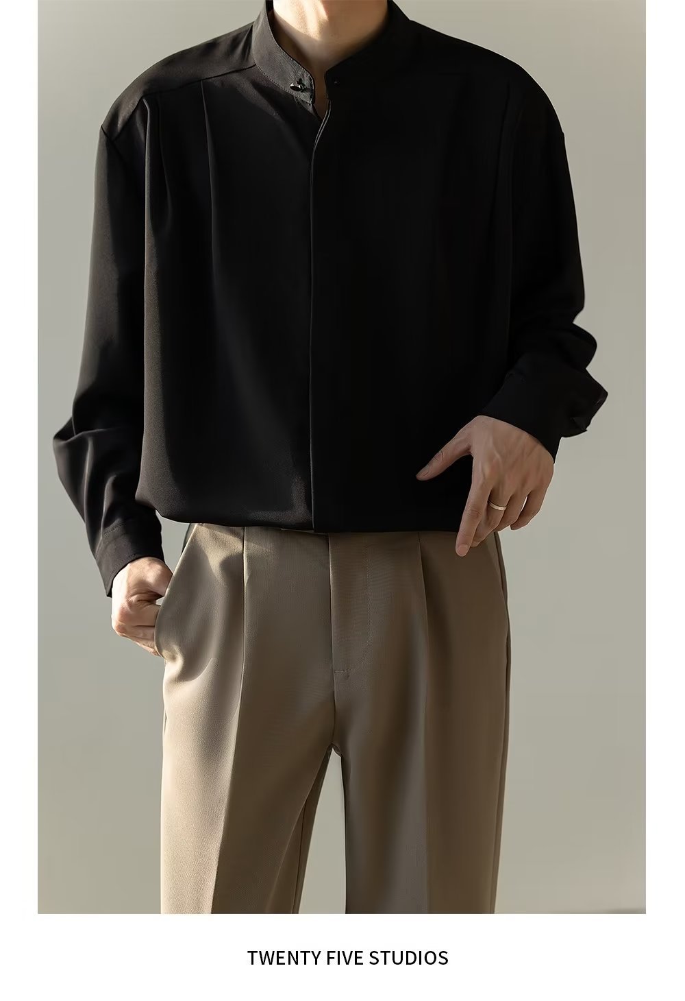 Mens Casual Loose-fitting Long-sleeve Shirt With A Stand-up Collar
