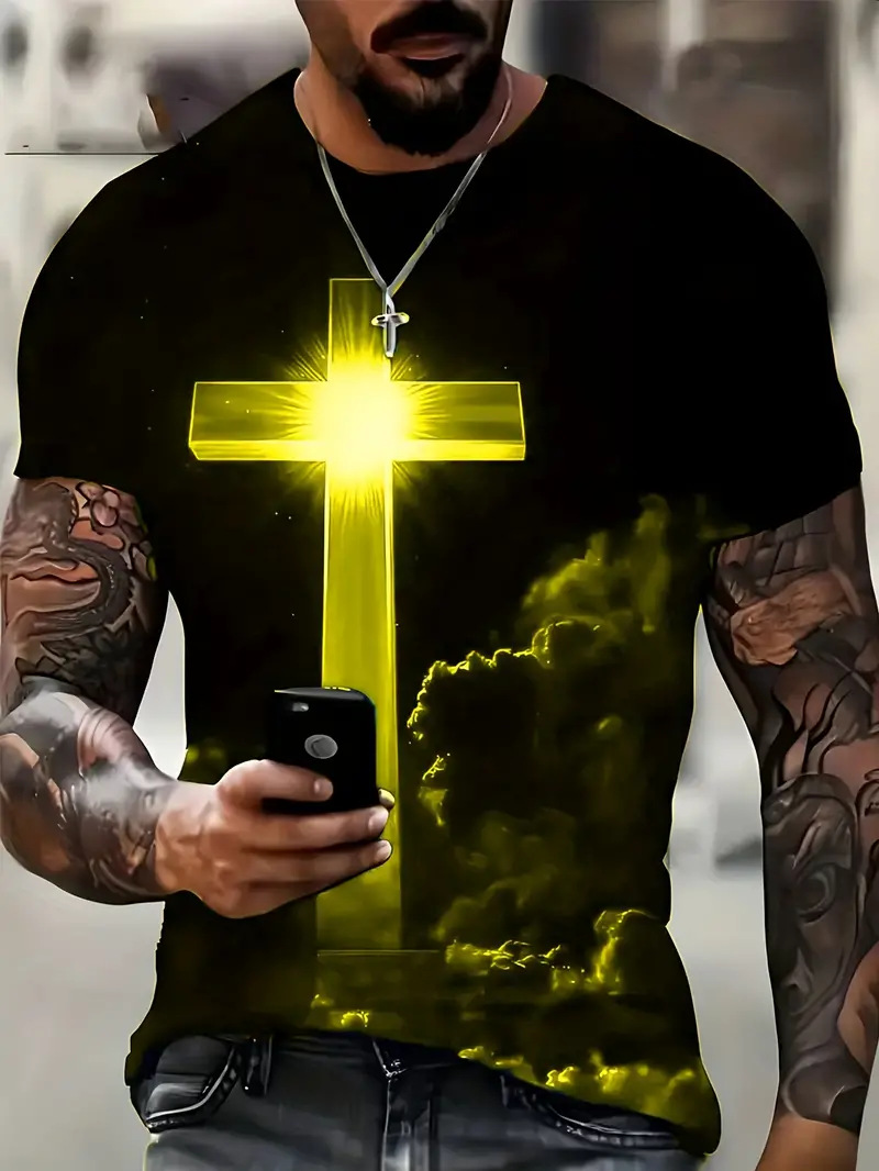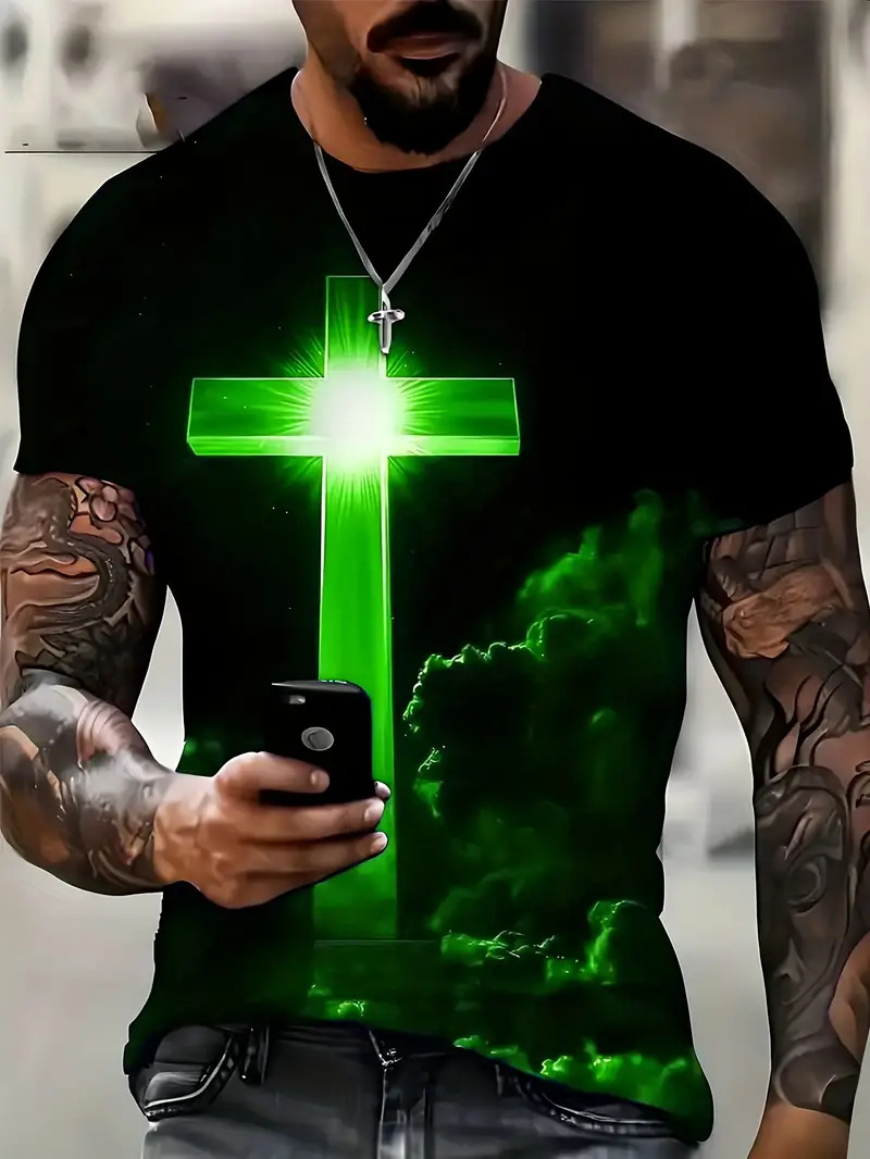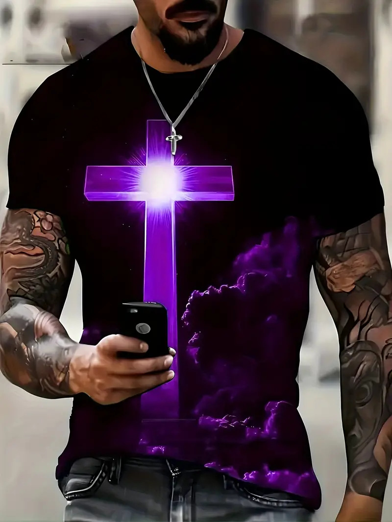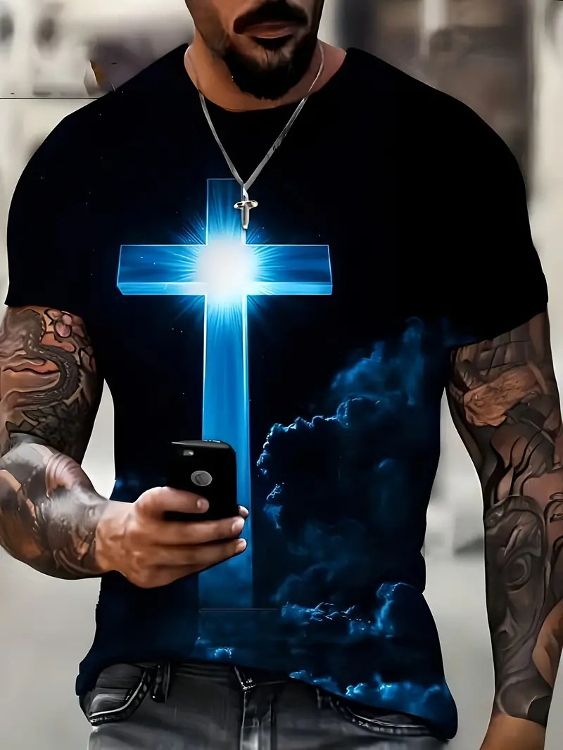 Men's Cross 3D Digital Printing Loose Casual Short Sleeve