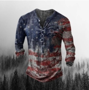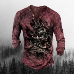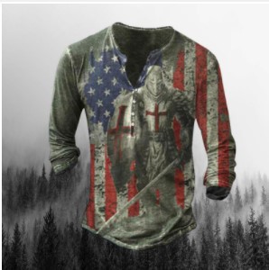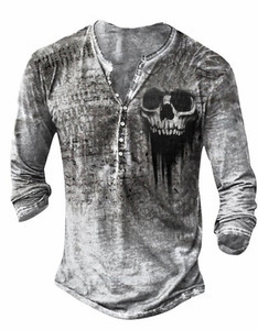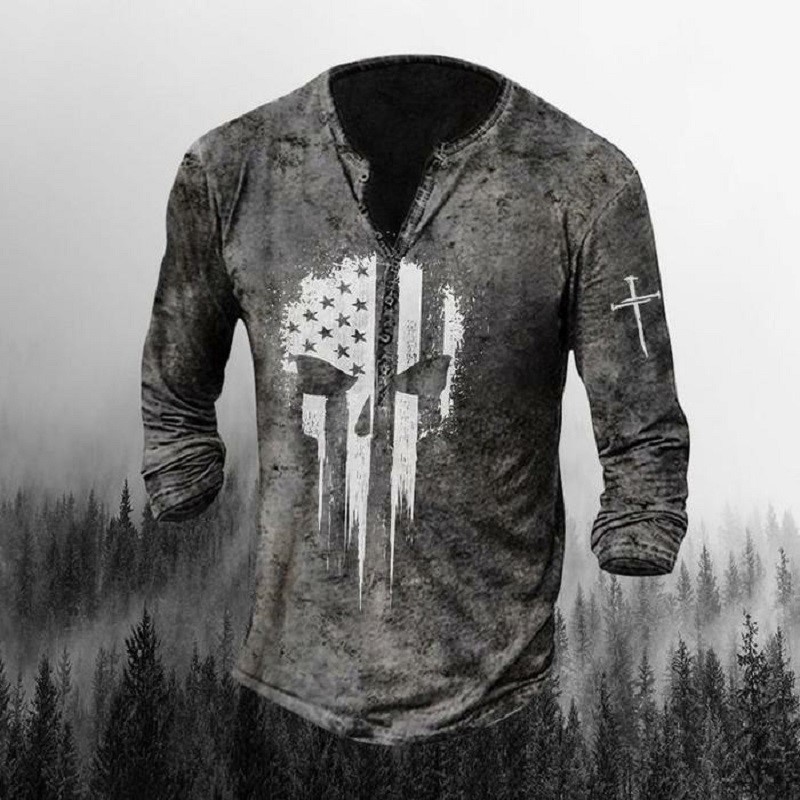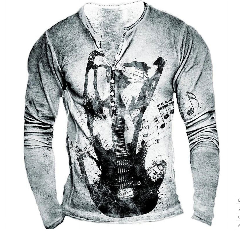 Men's Simple Round Neck Long Sleeve Buckle 3d Digital Printed T-shirt