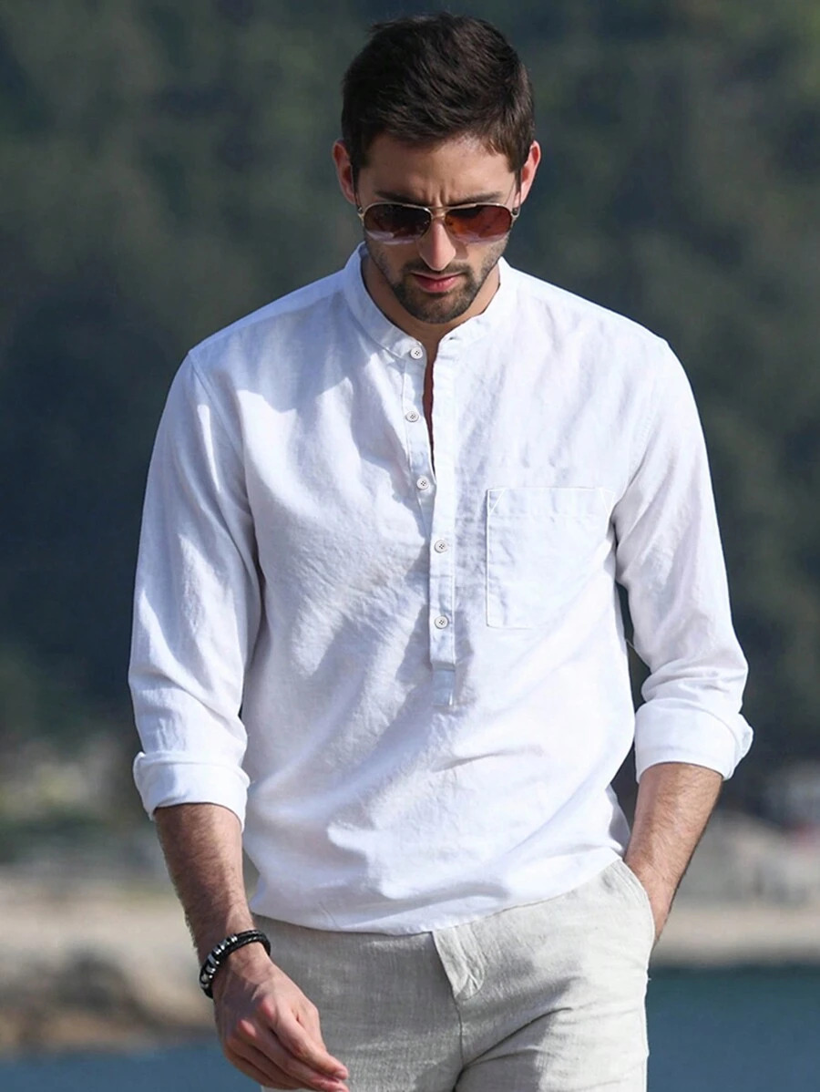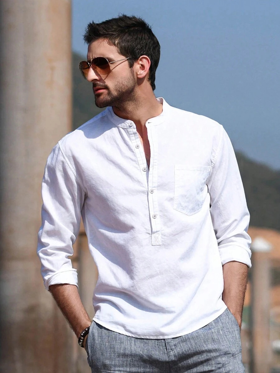 Men's Solid Color Versatile Casual Simple Breathable Long Sleeve