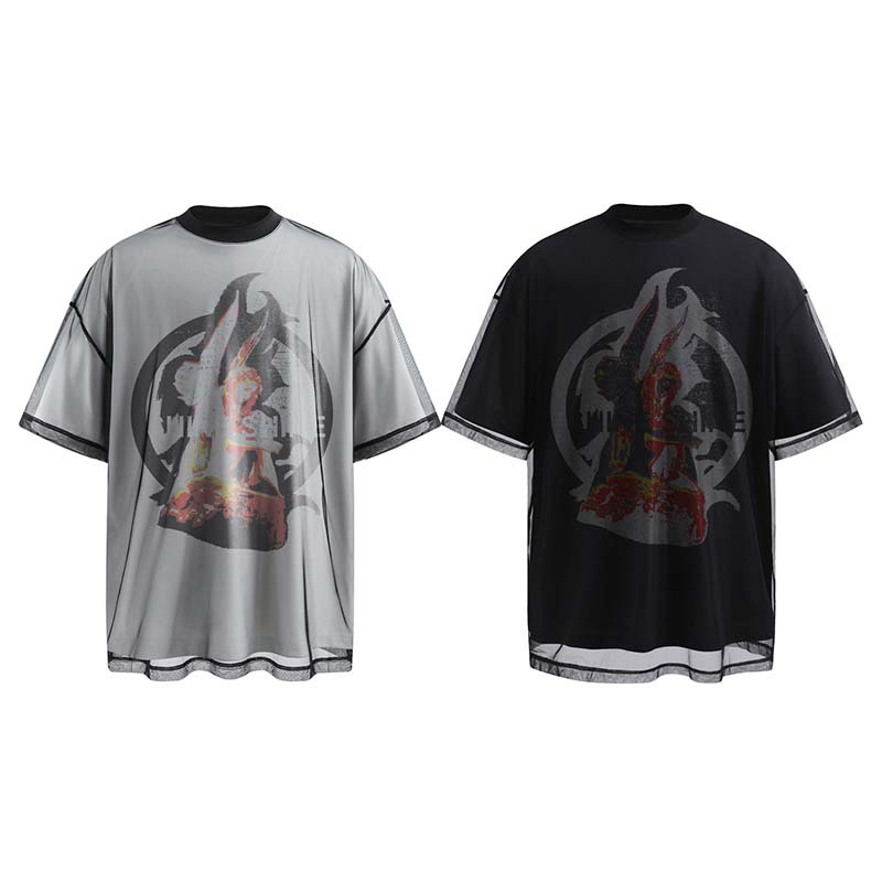 National Fashion American Angel Print Fake Two-piece Double-layer Niche Short-sleeved T-shirt Men