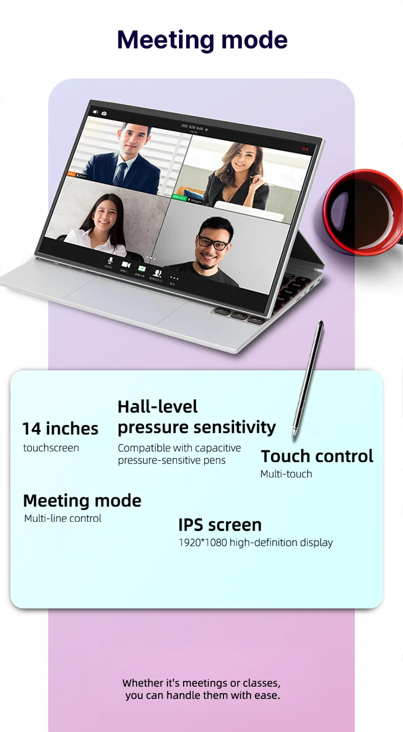 New 14.1 Inch Intel N95 Quad Core 3.4GHz 16GB RAM 2TB SSD 1920x1200 Display Windows 11 Touchscreen English Business Laptop
