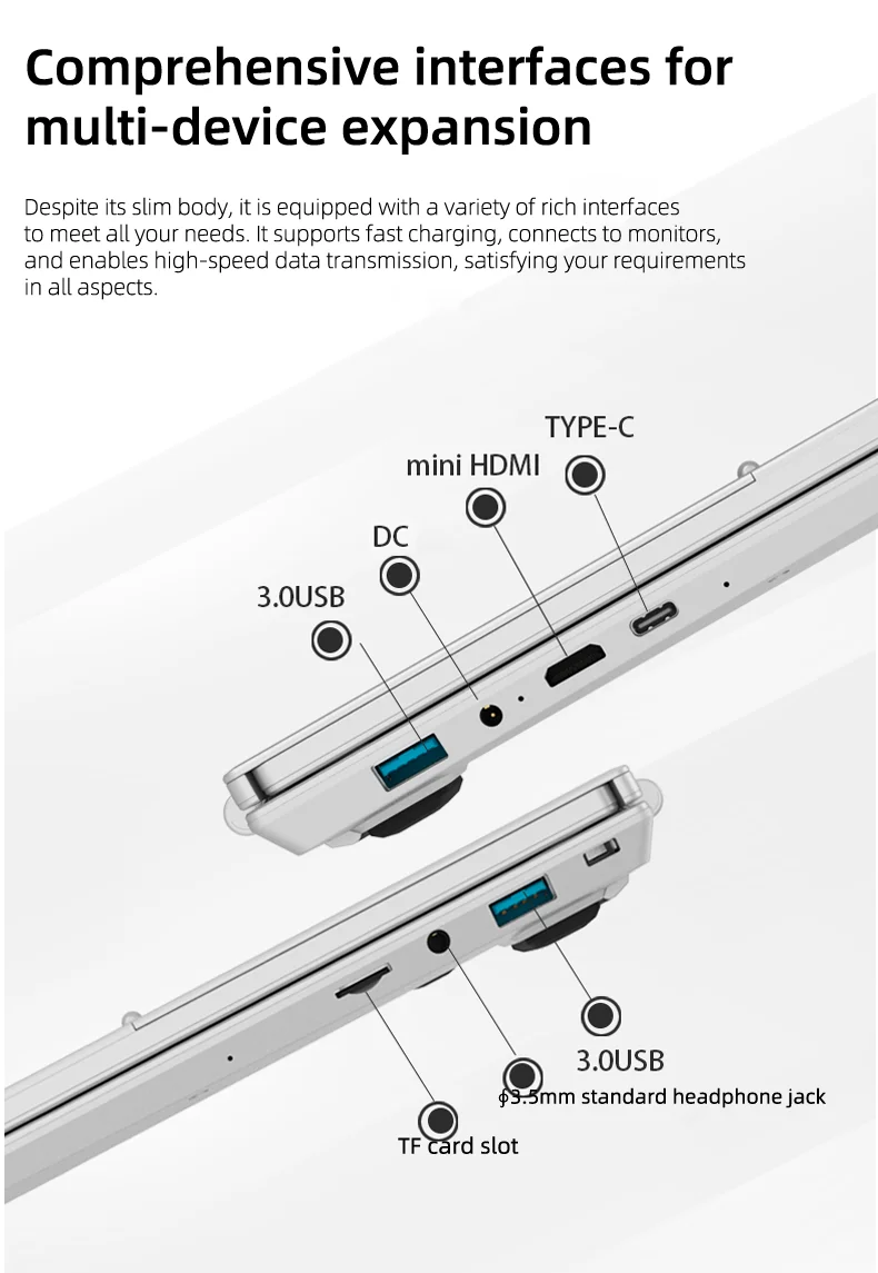 2*USB3.0   1*Type-C  1*TF  1*Mini HDMI 1*DC  1*3.5mm headphone jack